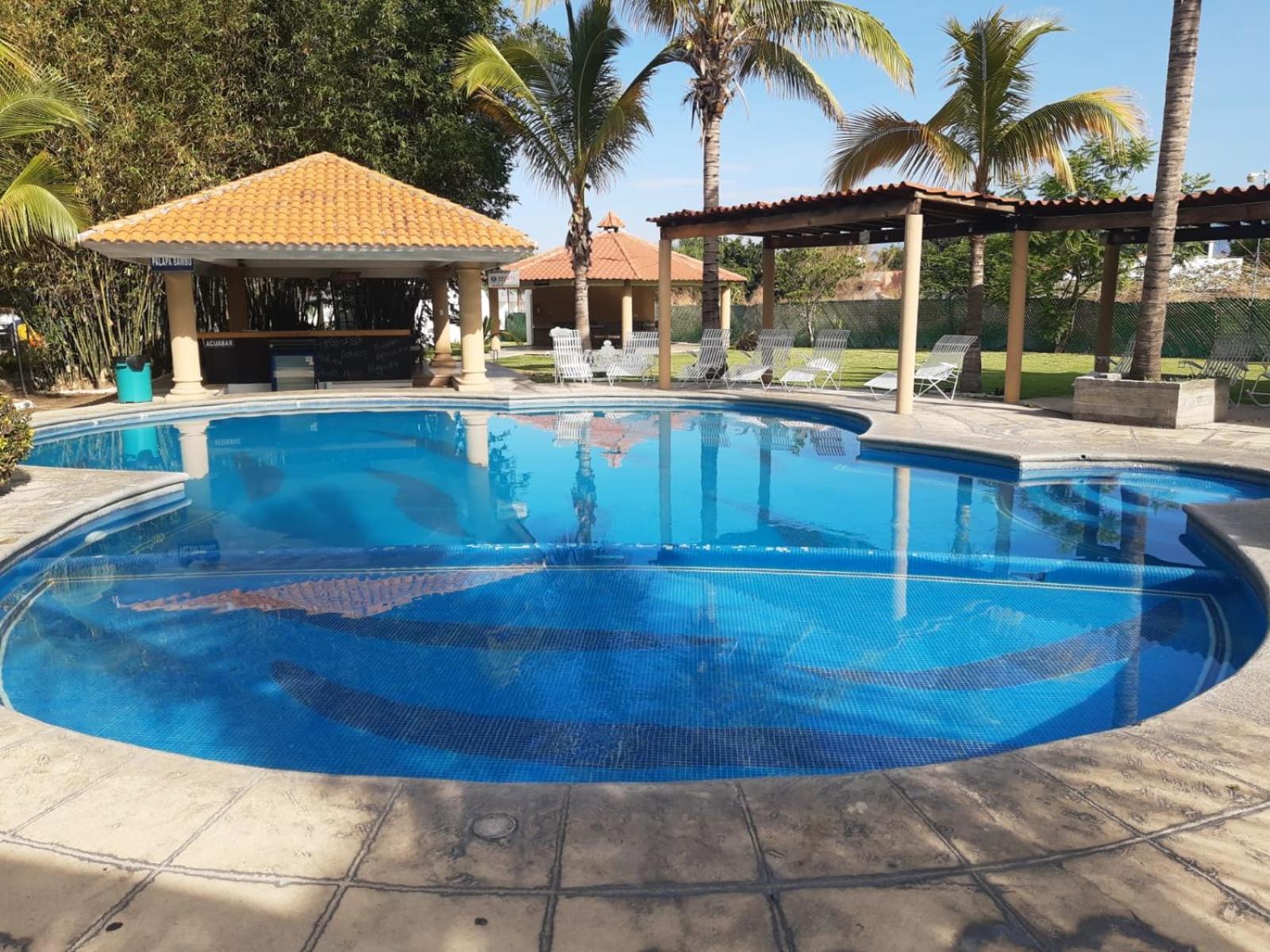 Hotel Cocoyoc boasts a large outdoor pool, perfect for a refreshing dip or lounging under the sun. The pool area is surrounded by beautiful thatched-roof terraces and comfortable sun beds, creating a serene oasis for guests to unwind.