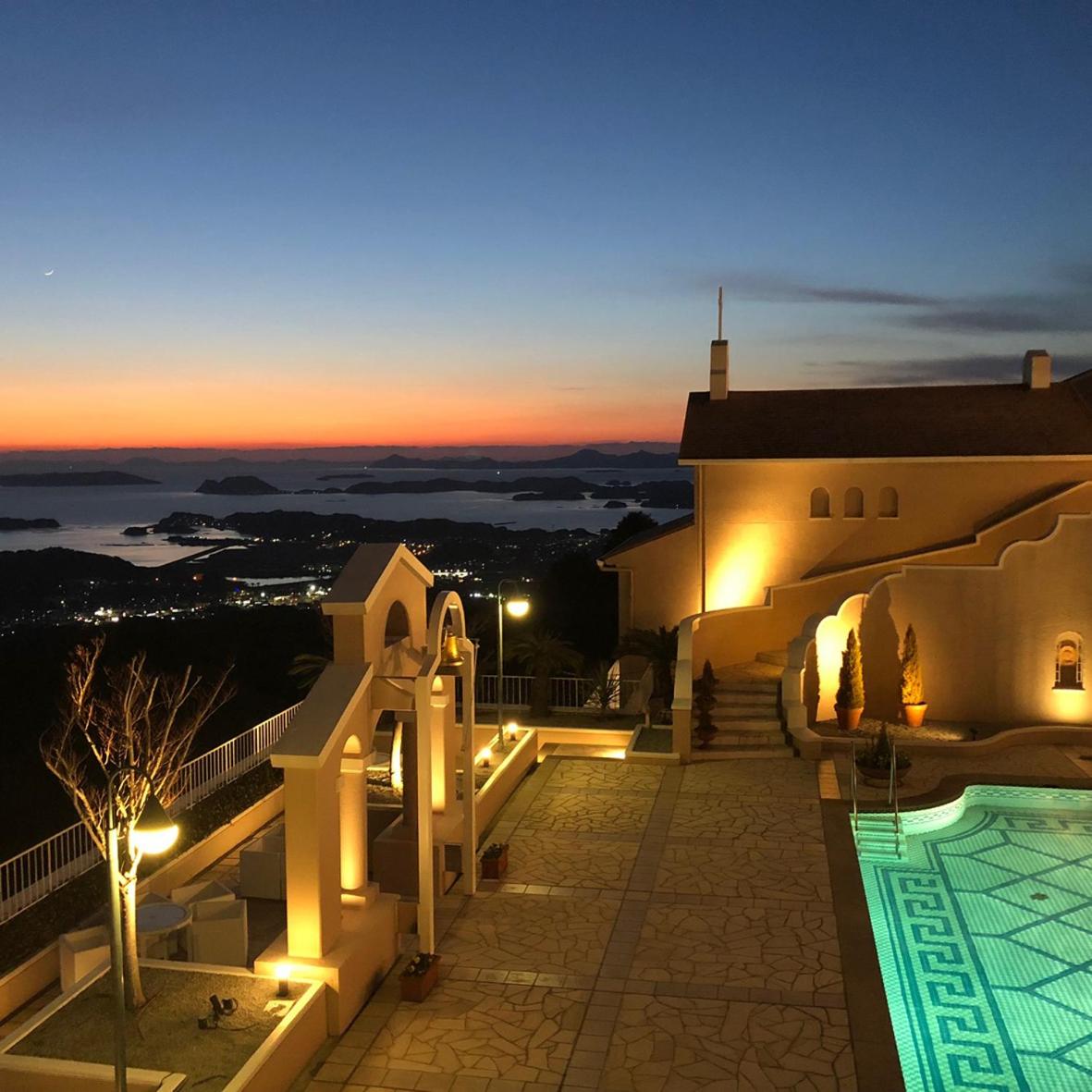 飯店本身就位於弓張岳展望台附近,既可俯瞰佐世保港又可俯瞰九十九島海景,住宿本身已不是只提供休息功能,更具有沉浸式觀景功能,尤其能夠欣賞佐世保及九十九島晨昏美景,絕美~