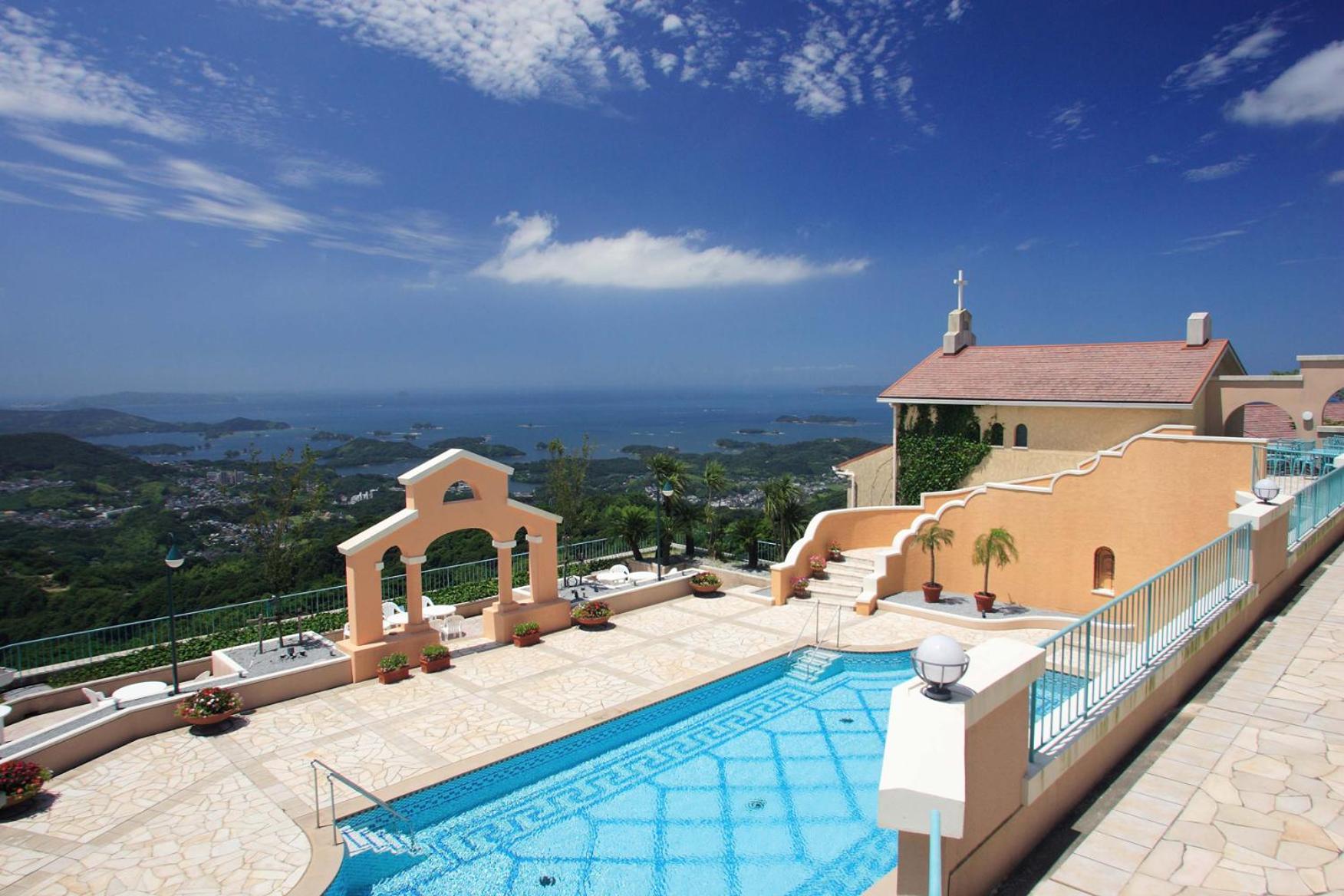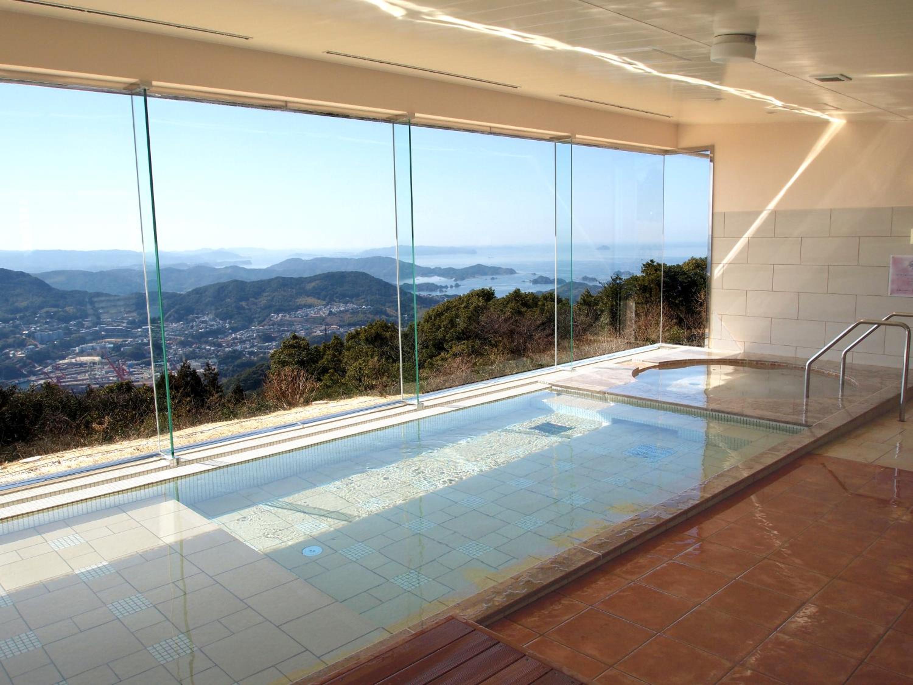 Serenity and Relaxation: Unwind with a soothing indoor hot spring bath and a refreshing outdoor pool while taking in the breathtaking nature views of Saikai National Park.
