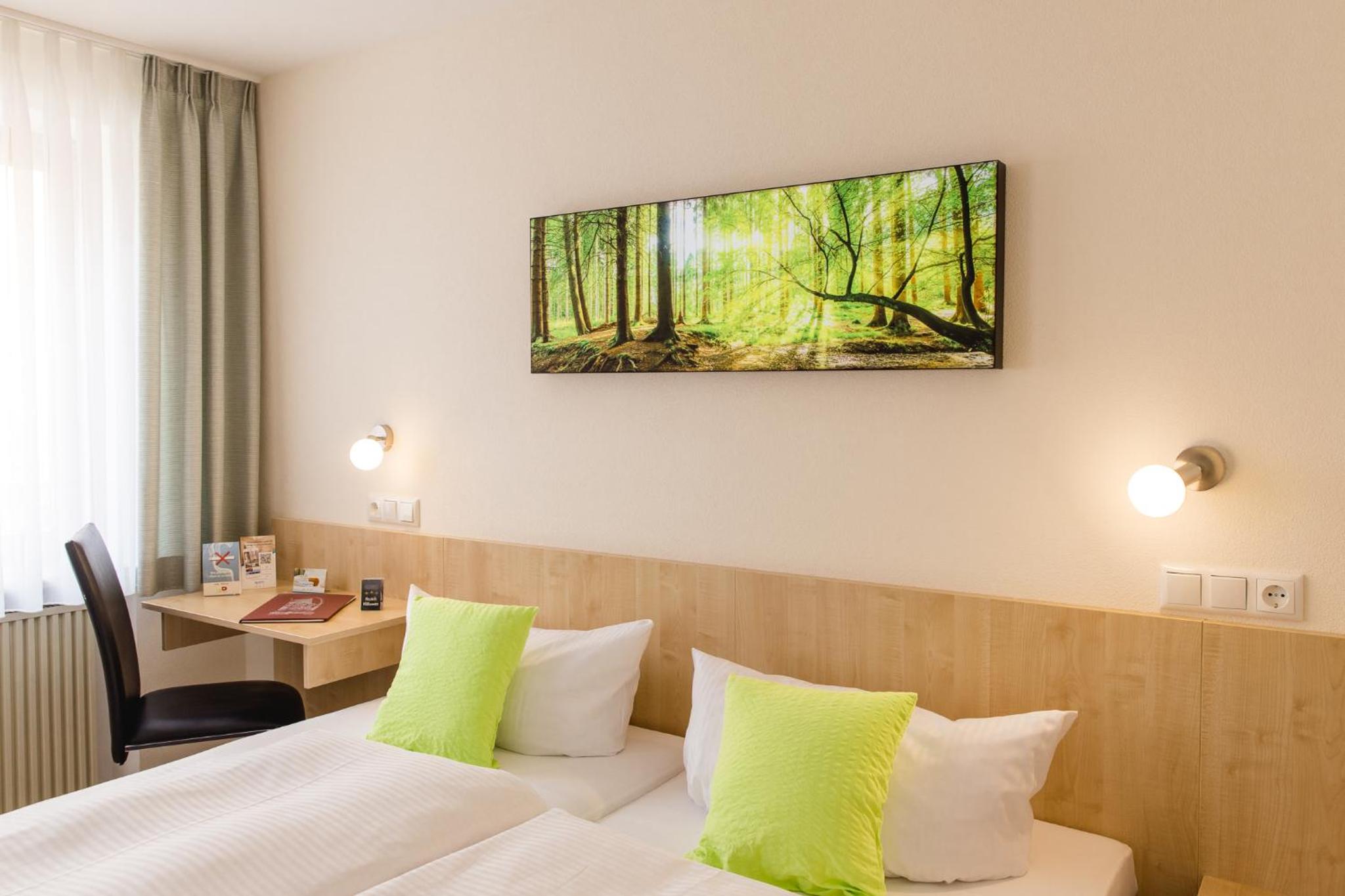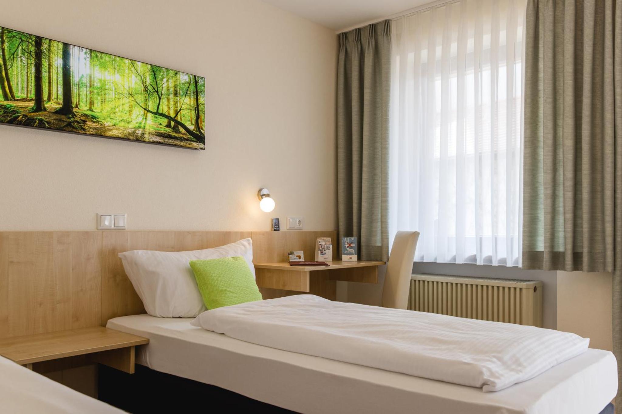 Staff was wonderful, rooms were very nice, location is outstanding. Wemding is the perfect location for discovering the Nordlingen Ries and Altmuhltal. Both Solnhofen and Nordlingen, for instance, can be reached in less than 30 minutes by car. This was the primary reason for choosing Wemding, but the town itself exceeded expectations - very scenic, easy to find nice (and affordable!) restaurants. We also dined at the hotel restaurant, and that was very nice too. Breakfast was very nice, in a nice traditional setting. Rooms were nice, quite big, clean, and quiet (despite being above the little cinema), WIFI was very good. And the staff was absolutely wonderful, very friendly and helpful. We were traveling with our two adolescent boys, they had their own room, with separate beds. I requested this through Booking.com chat function and the positive response from the owner was very fast and friendly. In all an excellent experience.