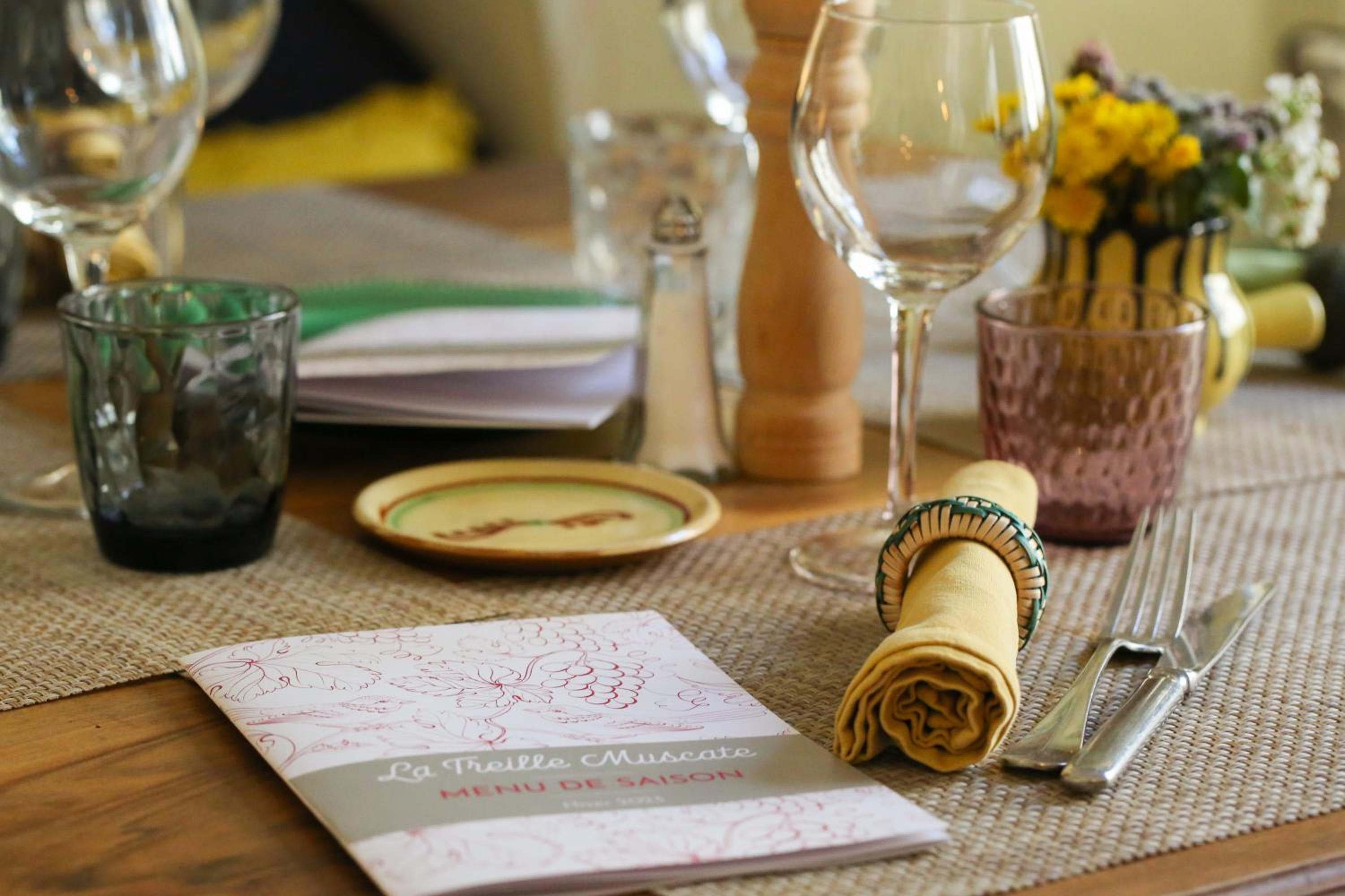 Experience the charm of twelve en-suite rooms at Treille Muscate, each offering picturesque countryside views and adorned with elegant linen curtains and artwork. Select rooms even feature private terraces for a tranquil retreat. Indulge in exquisite dining at the hotel's restaurant, lauded by top French culinary guides. Enjoy a delightful gourmet experience on the terrace, especially on sunny days.