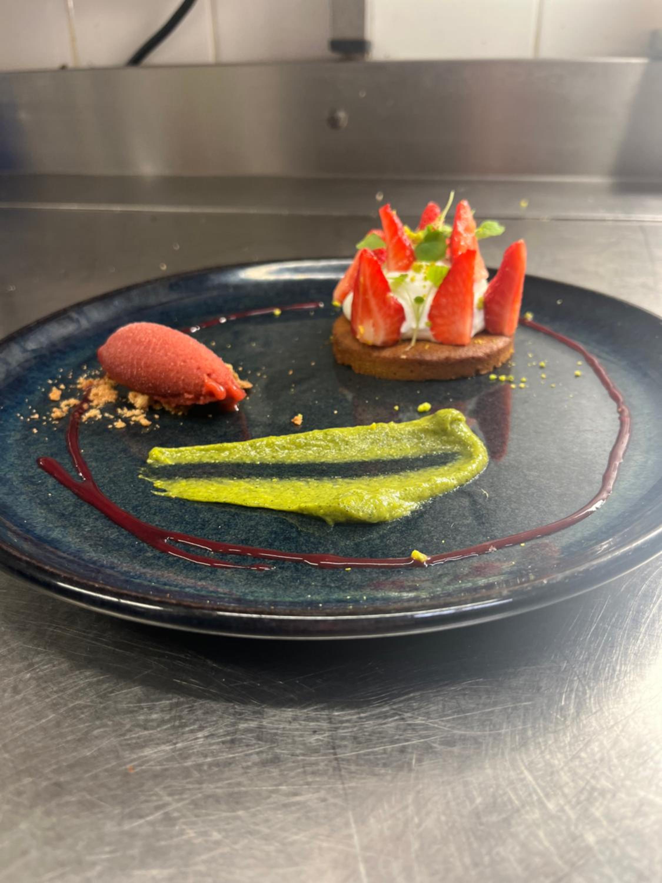 Verrassende locatie met keramiekwerkplaats en winkel 100 m verder. Prachtig oud hotelletje uit 1750. Aardige mensen en langzame laadplek die toevallig vrij was. Leuk om te zien dat ze nog recente goede beoordelingen hebben ontvangen wat betreft hun keuken.