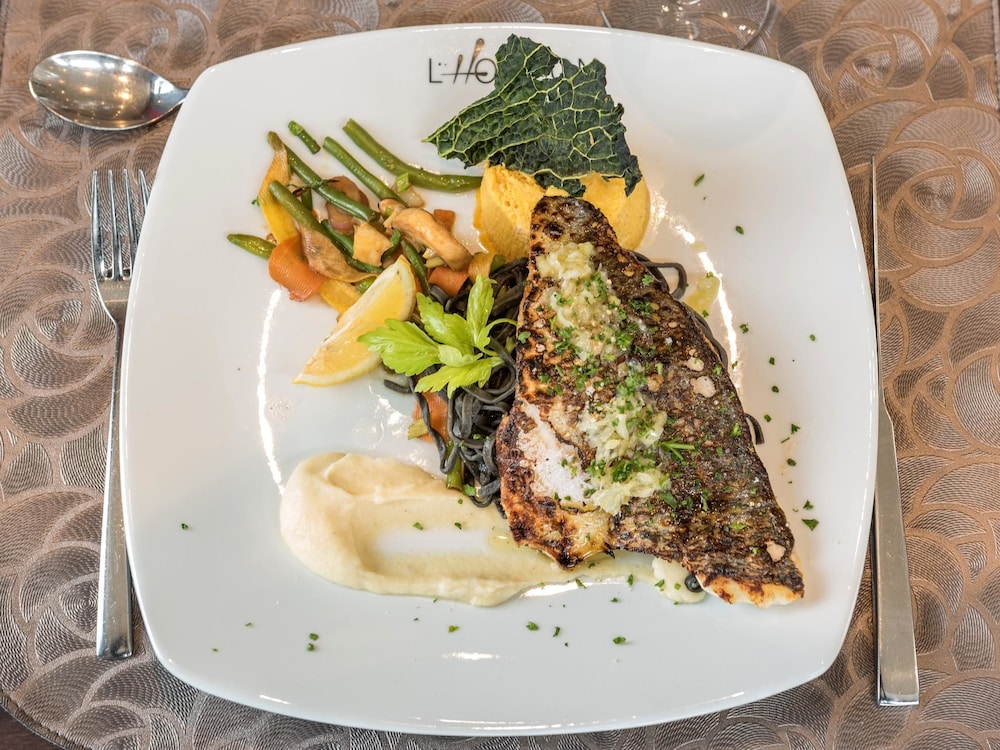 Enjoy breathtaking views from the terrace at Hôtel l'Horizon, creating the perfect backdrop for your stay.