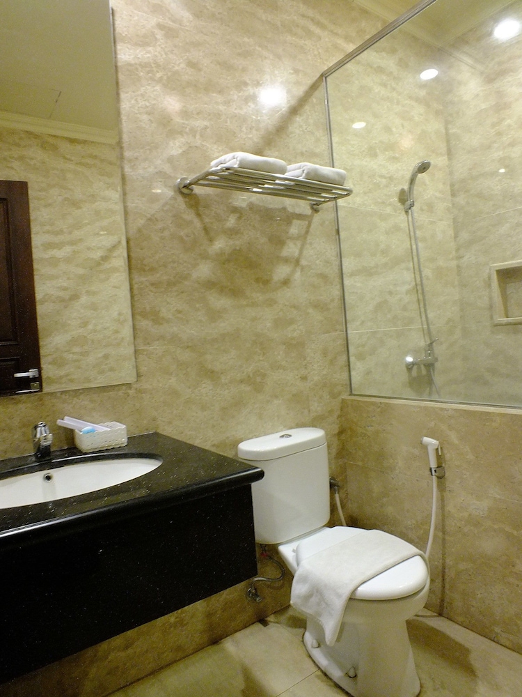 Kamar nya terlihat mewah, persis spt yg ada di gambar. Walaupun gak bs check-in lbh cepet, ttp saya bs titip koper. Room service stiap hr menggantikan handuk dan peralatan mandi lainnya. AC dingin, stop kontak ny banyak, ad hair dryer & pemasak air juga. Ada exhaust fan juga di toilet, yg sangat berguna dikala mandi dgn air panas.