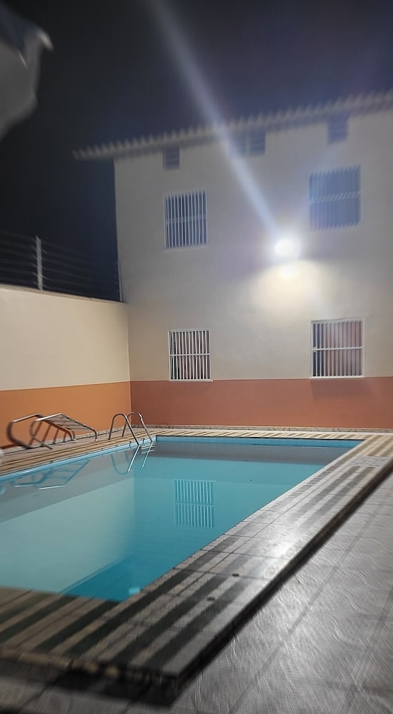 Propreté parfaite, petit hôtel sécurisé, très bien pour une nuit, à proximité de l’aéroport et du terminal de bus. Piscine non testée. Une table de nuit serait utile.