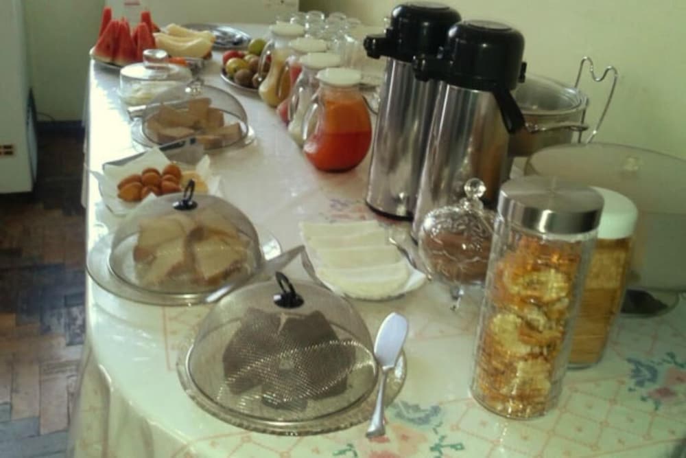 O café da manhã é regular, tem algumas frutas, experimentei um bolo bem gostoso e fresco, isso me surpreendeu.