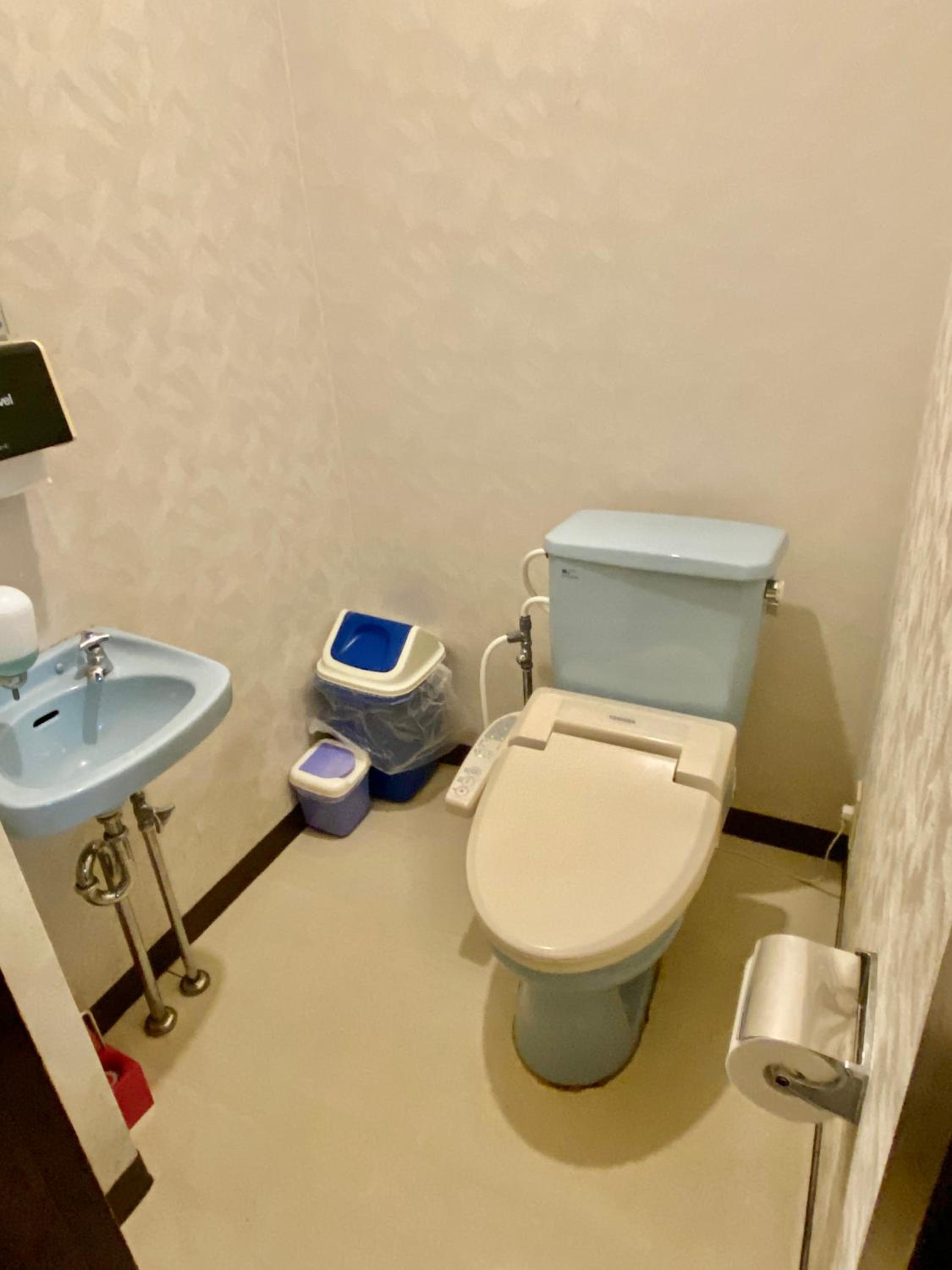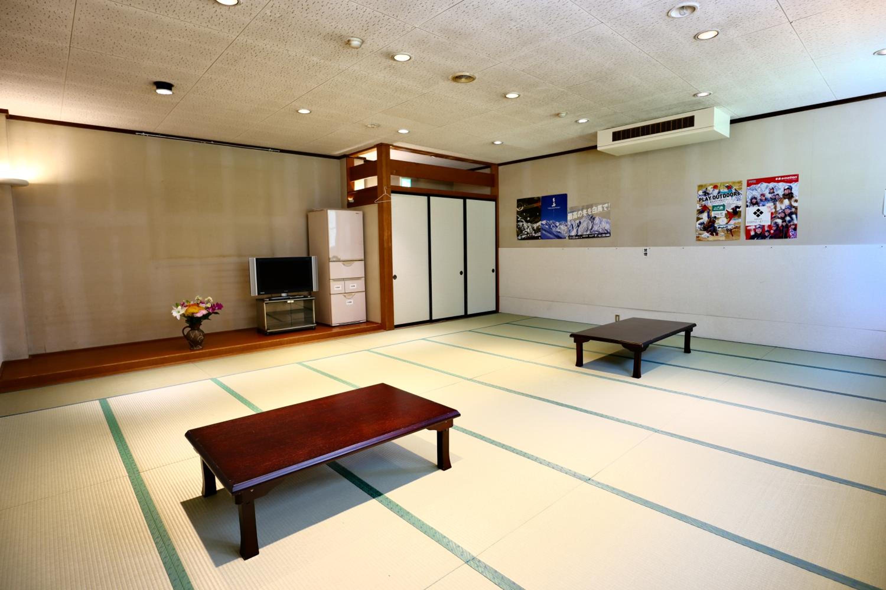 Guests can choose between a standard Western-style room or experience a traditional Japanese room complete with tatami floors and futon bedding. Each room features a private bathroom with essential amenities for a comfortable stay.
