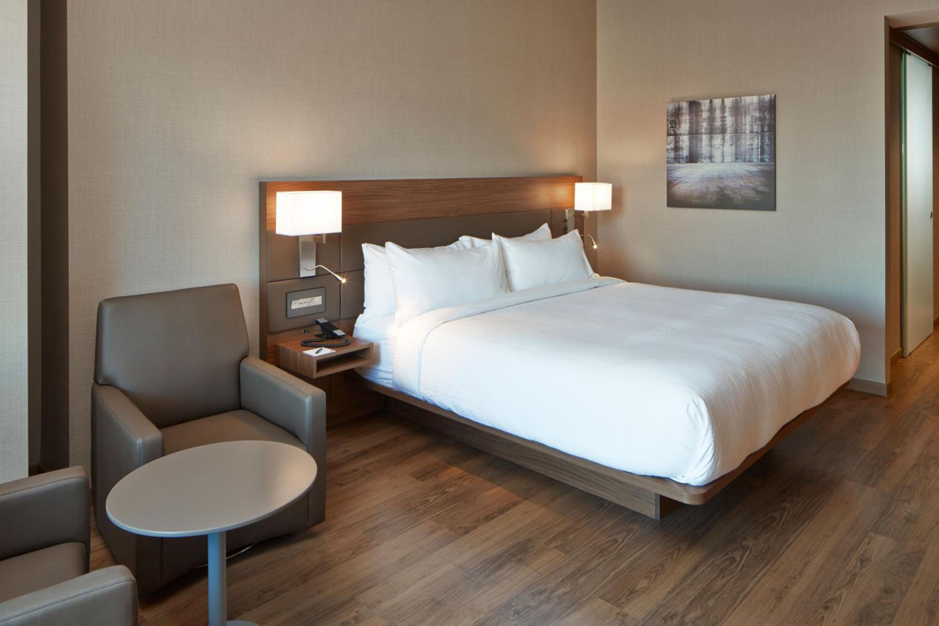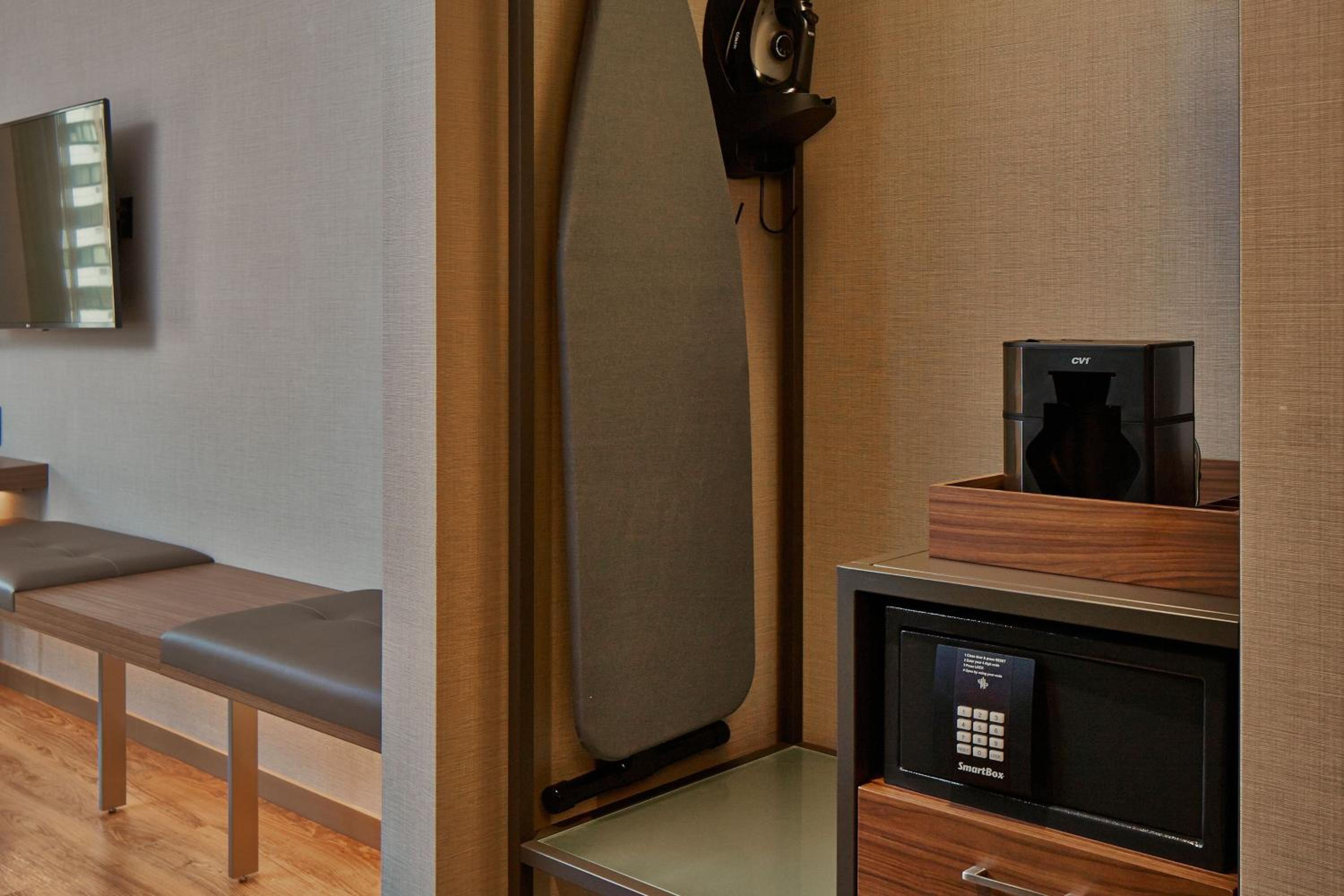 AC Hotel by Marriott Minneapolis Downtown offers stylish and comfortable rooms equipped with flat-screen smart TVs and video-streaming services. Some units even feature a cozy seating area for extra relaxation.