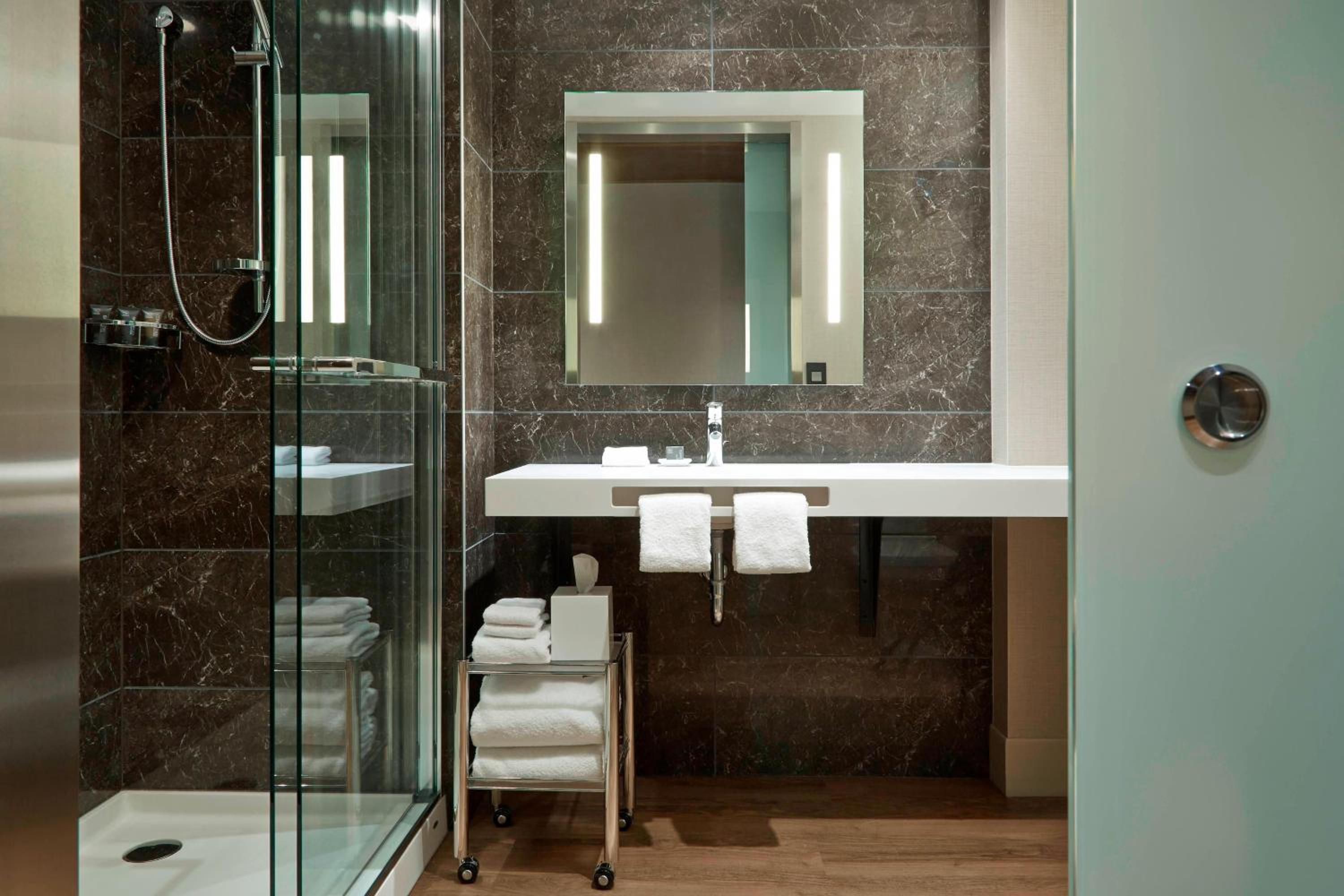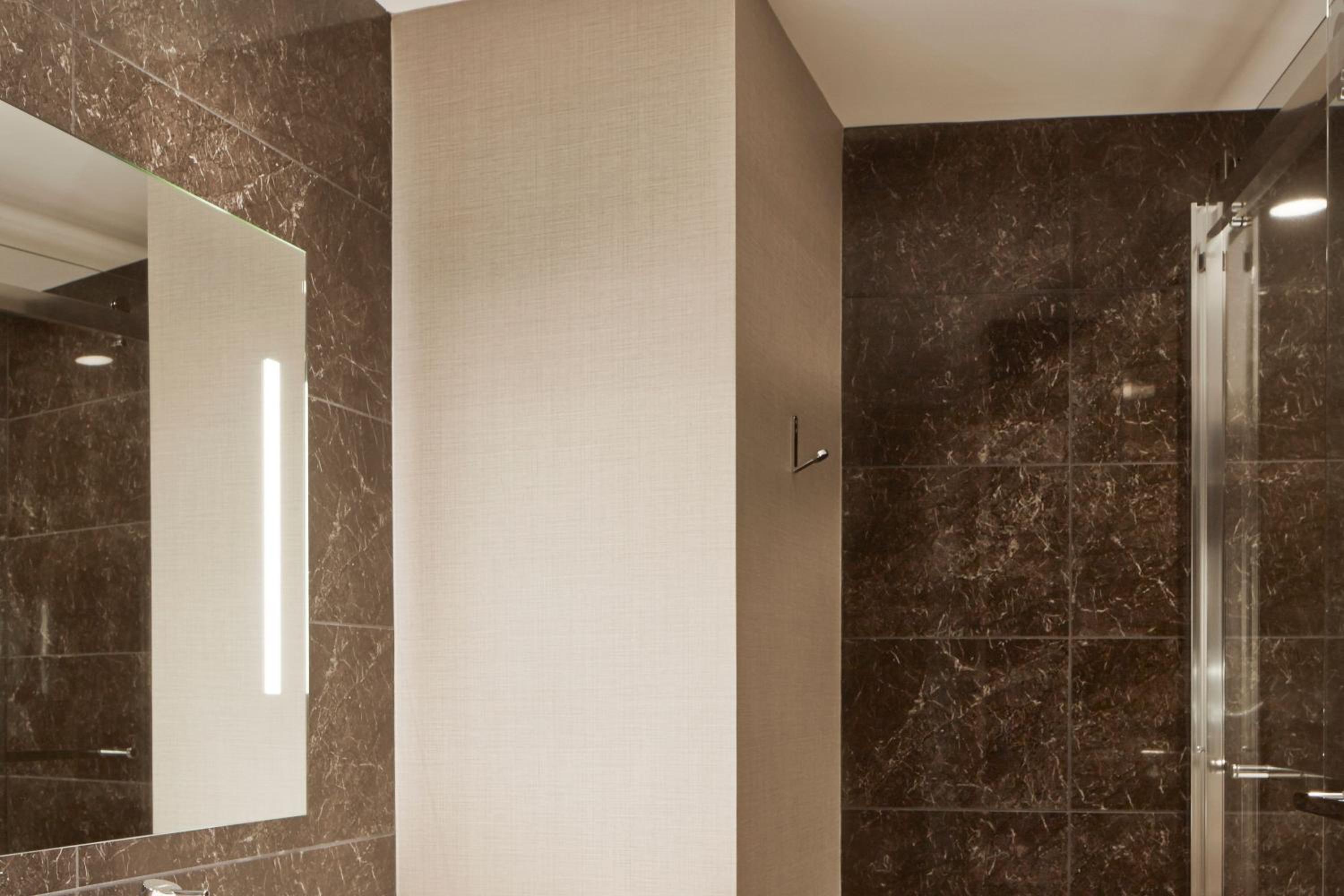 Our room was tiny and the shower was not very good. Very low water pressure. Also, the bathroom door is literally transparent glass with some designs on it. No privacy whatsoever. And parking is ridiculously expensive at 40 dollars per night.