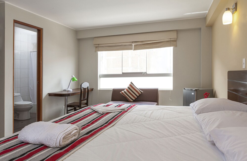 The rooms were spacious, and everything was clean, modern and nice. We were very pleased with the comfortable beds and nice modern bathrooms. Erika the host was amazingly nice. Breakfast was sit-down eggs to order with fruit drink and rolls, which was nice. Two blocks from plaza de armas.