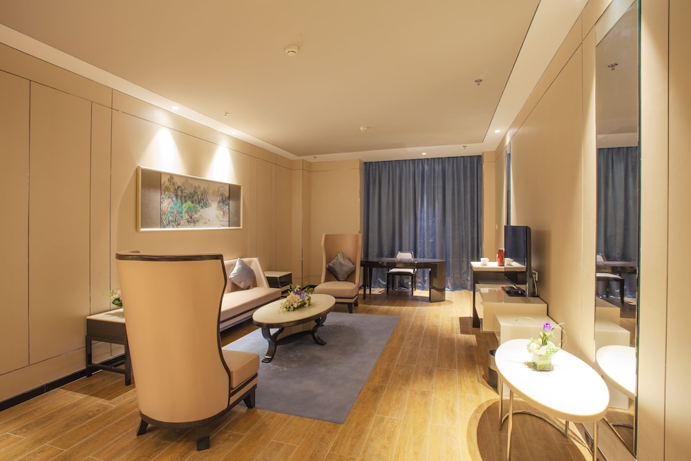 I believe the hotel was designed beautifully. But the poor maintenance causese the ware and tear shown everywhere. It is fairly clean and quiet. It located very close to a subway station (line 16). There are very limited resources around the hotel. The areas is under development. Taxi is hard to find. If you want to go to a far away destination, the front desk staff could call a taxi for you. It is no problem usually. If you want to go somewhere not so far away, none of the taxis wants to come.
