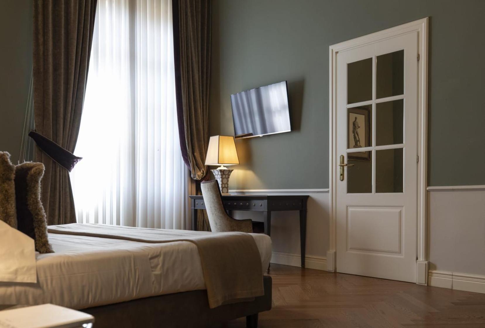 Indulge in comfort and style at Palazzo Roselli Cecconi, where each room is equipped with modern amenities including air conditioning, flat-screen TVs, and luxurious bathrooms with complimentary toiletries.