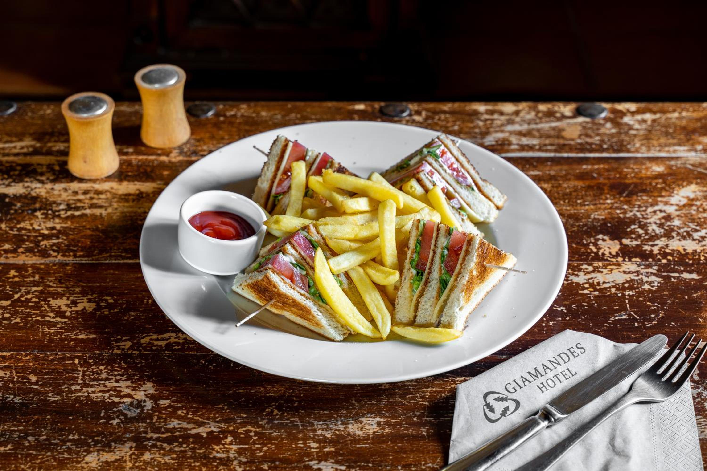 From private balconies to wooden floors and furnishings, Giamandes rooms and suites are equipped with modern amenities such as satellite TV, minibar, and free toiletries. For added luxury, select units feature a fireplace and a spa bath, ensuring a truly indulgent stay.