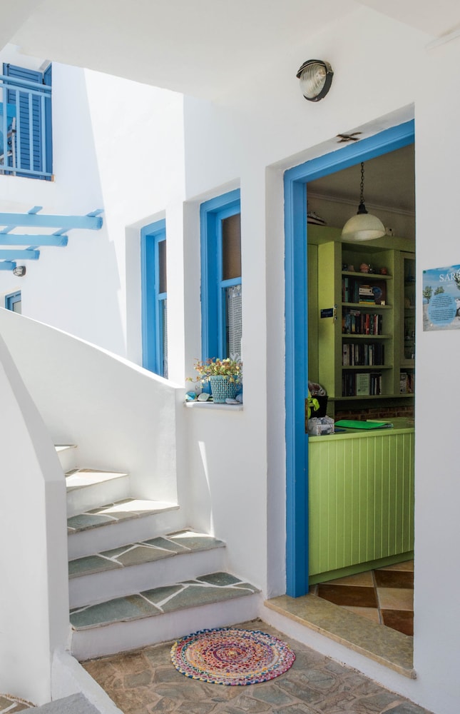 10/10 recommend this hotel. The staff is friendly, speaks English, and is always available. The lobby is right behind the restaurant that is street side. Enter on the walkway to the left, door is just past the restaurant on the right. Beach towels are available to rent for 2€ each, keep them for your entire stay. Breakfast served everyday ending at 1100, it’s not buffet, you will have a server bring your food. Your option of eggs every day, as well as other food will be brought out depending on the day. It was all excellent when I was there. The rooms are clean, have internet access, a safe, fridge, and large shower. Very central location with plenty of stores, beaches, and restaurants within a 5 minute walk. Even late at night in the dark we felt safe, plenty of people around. The island isn’t that busy, though it is catered to tourists, but in a slower more relaxed way. No one ever came up to us to try and sell us things. There is always space at the beach. If I ever end up back I’ll be staying at this hotel.