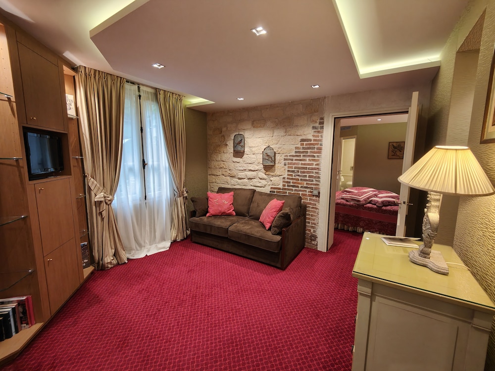 Experience the French elegance with 16 air-conditioned rooms, each featuring modern amenities like minibars and cable programming. Conveniently situated in the heart of Paris, just a short walk from iconic landmarks like Sorbonne University and Notre-Dame.