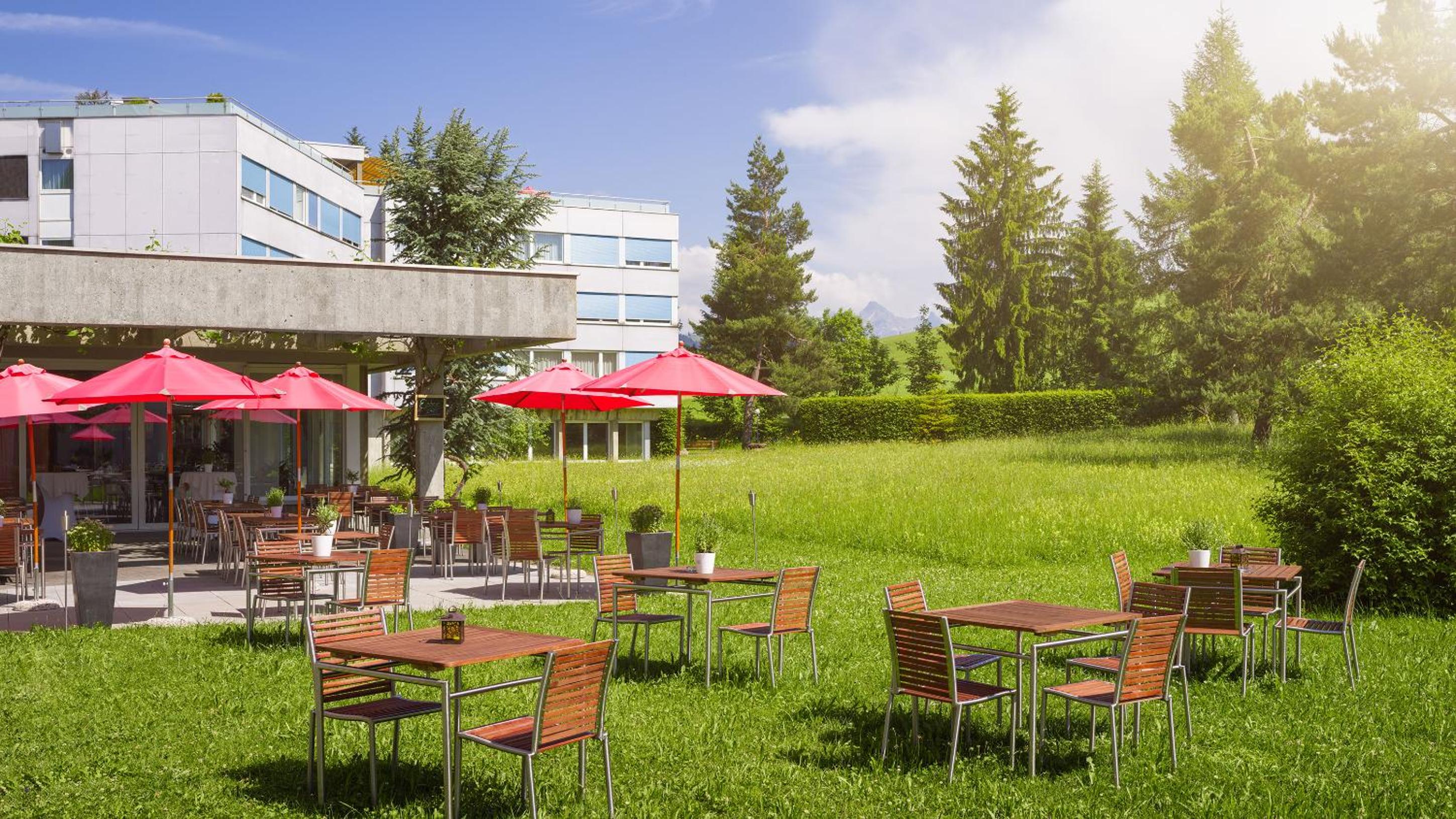 Indulge in traditional Swiss cuisine and healthy dishes at the on-site restaurant, boasting a panoramic roof terrace for a memorable dining experience. After a satisfying meal, unwind in the large garden, make use of the bowling facilities, or enjoy a game of billiards and table tennis.