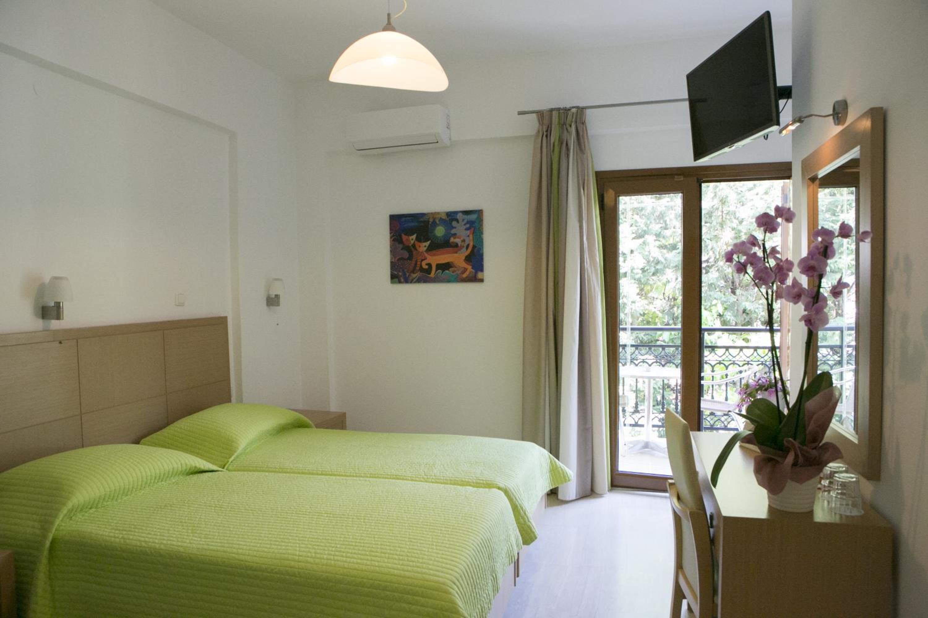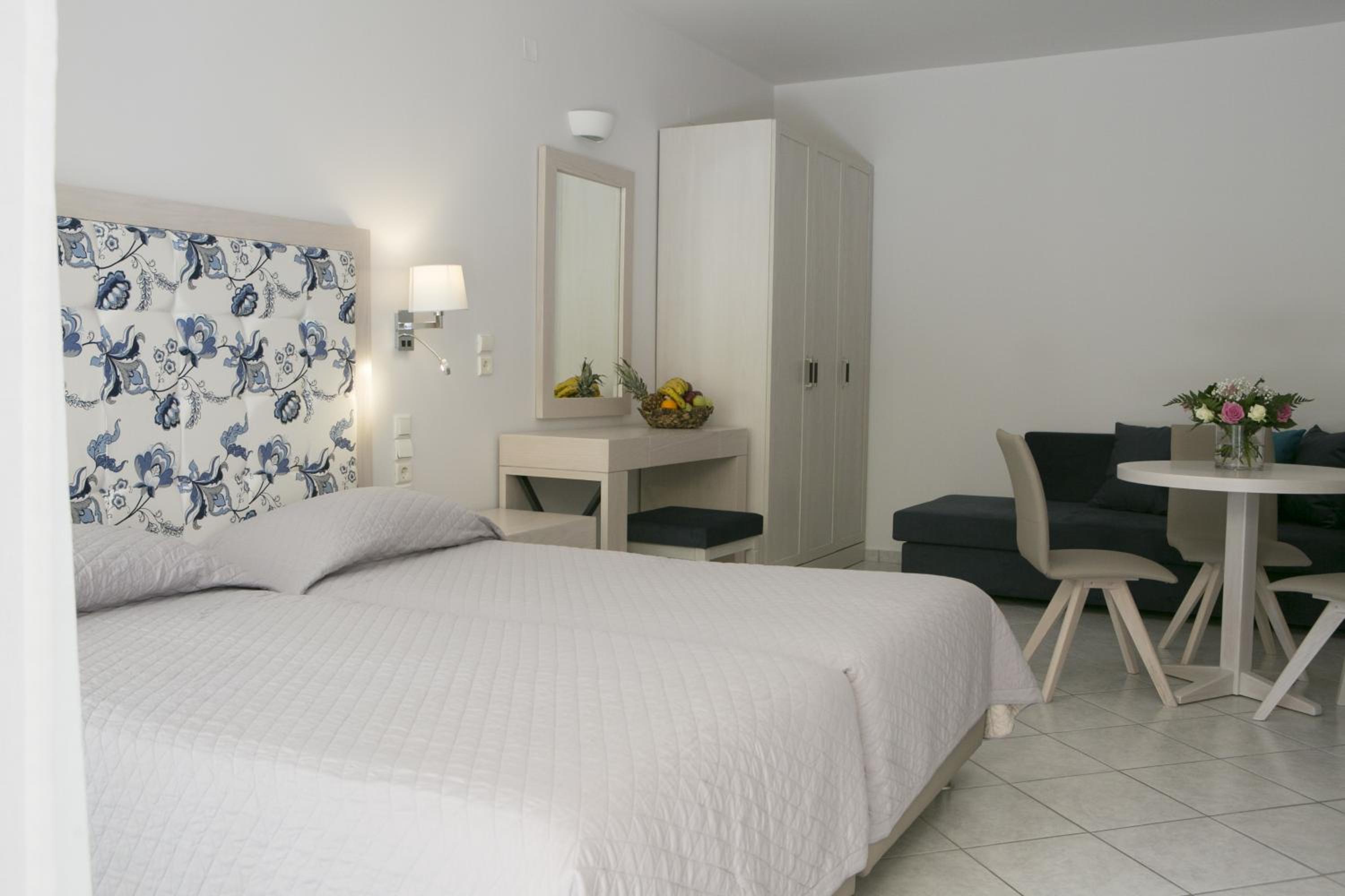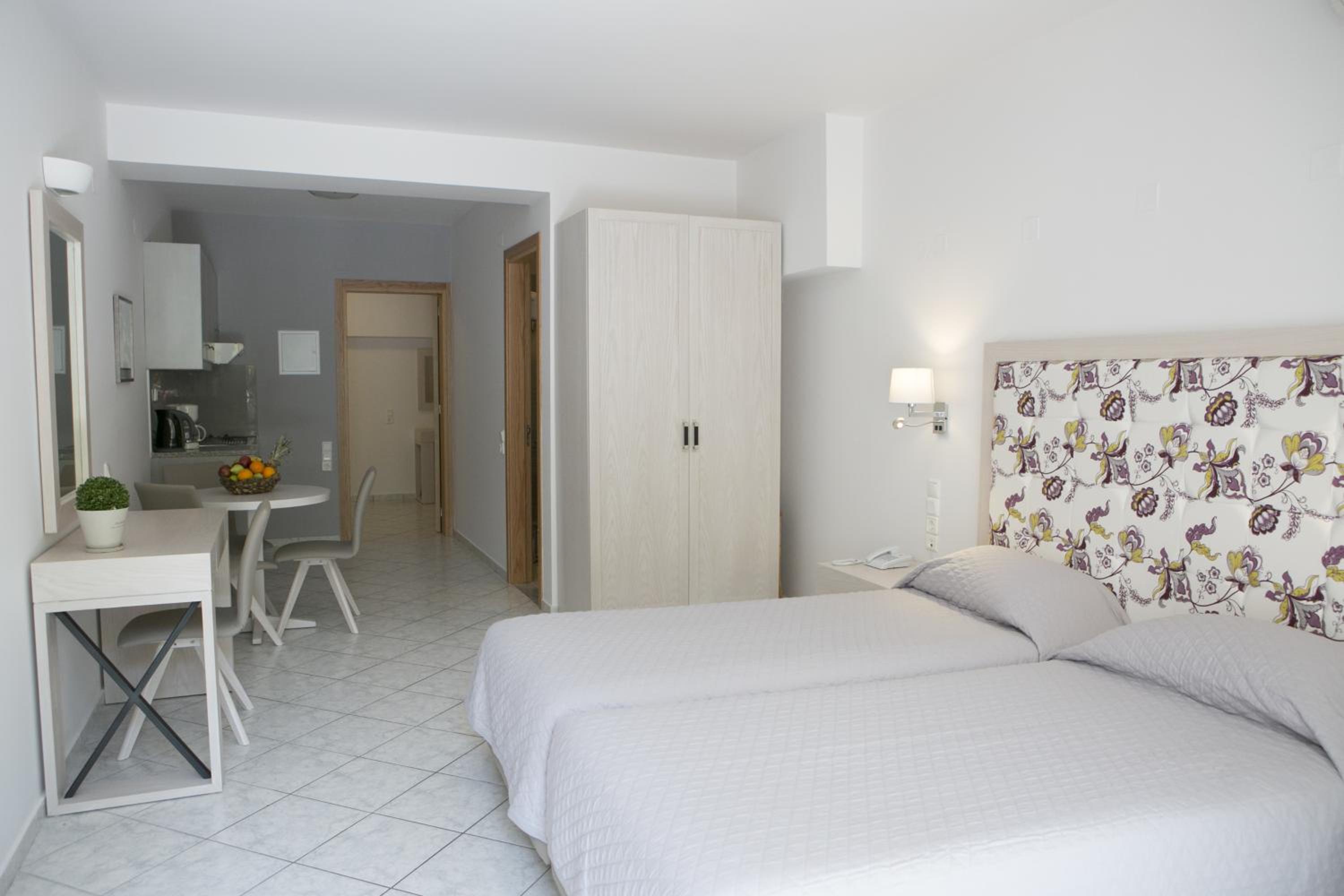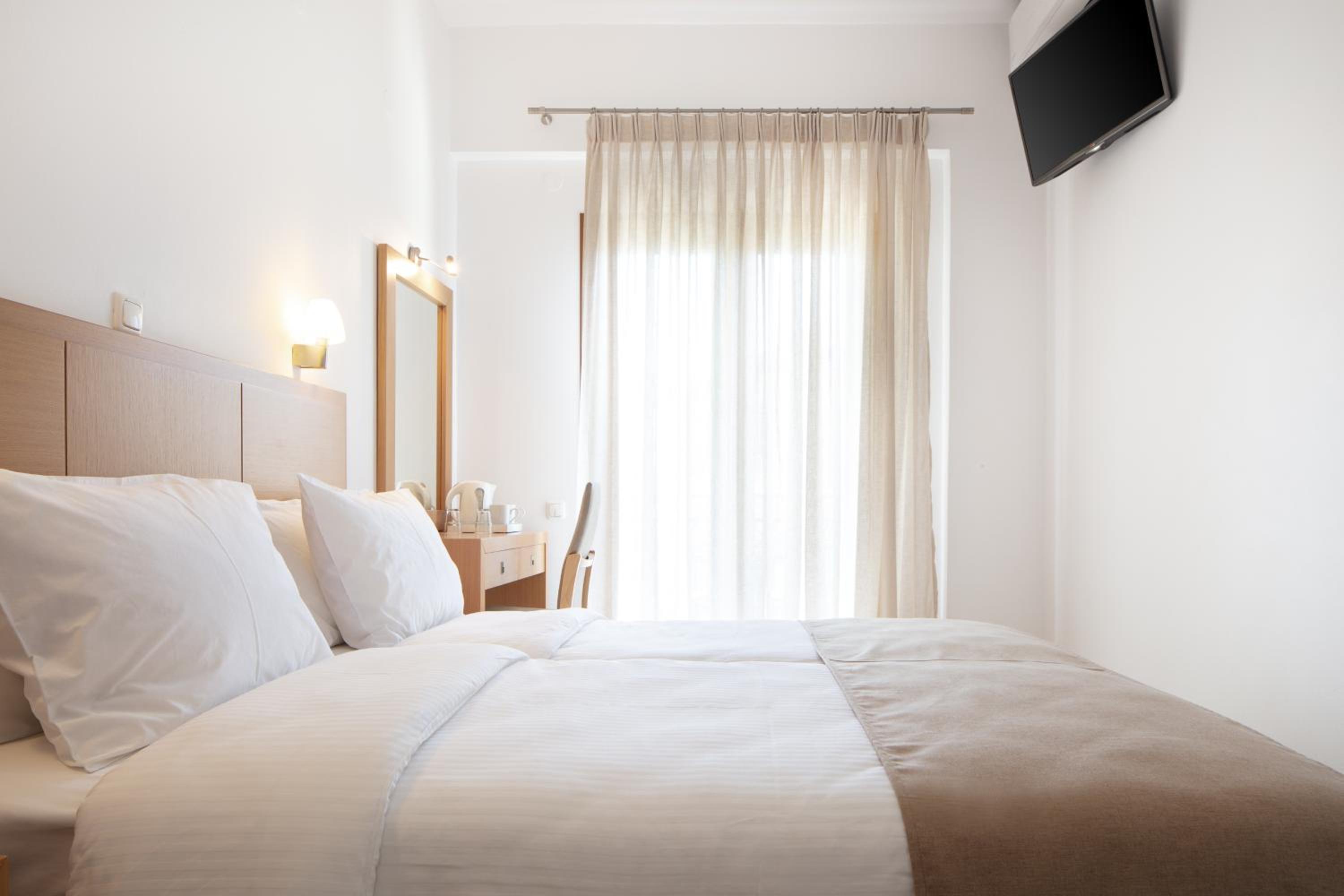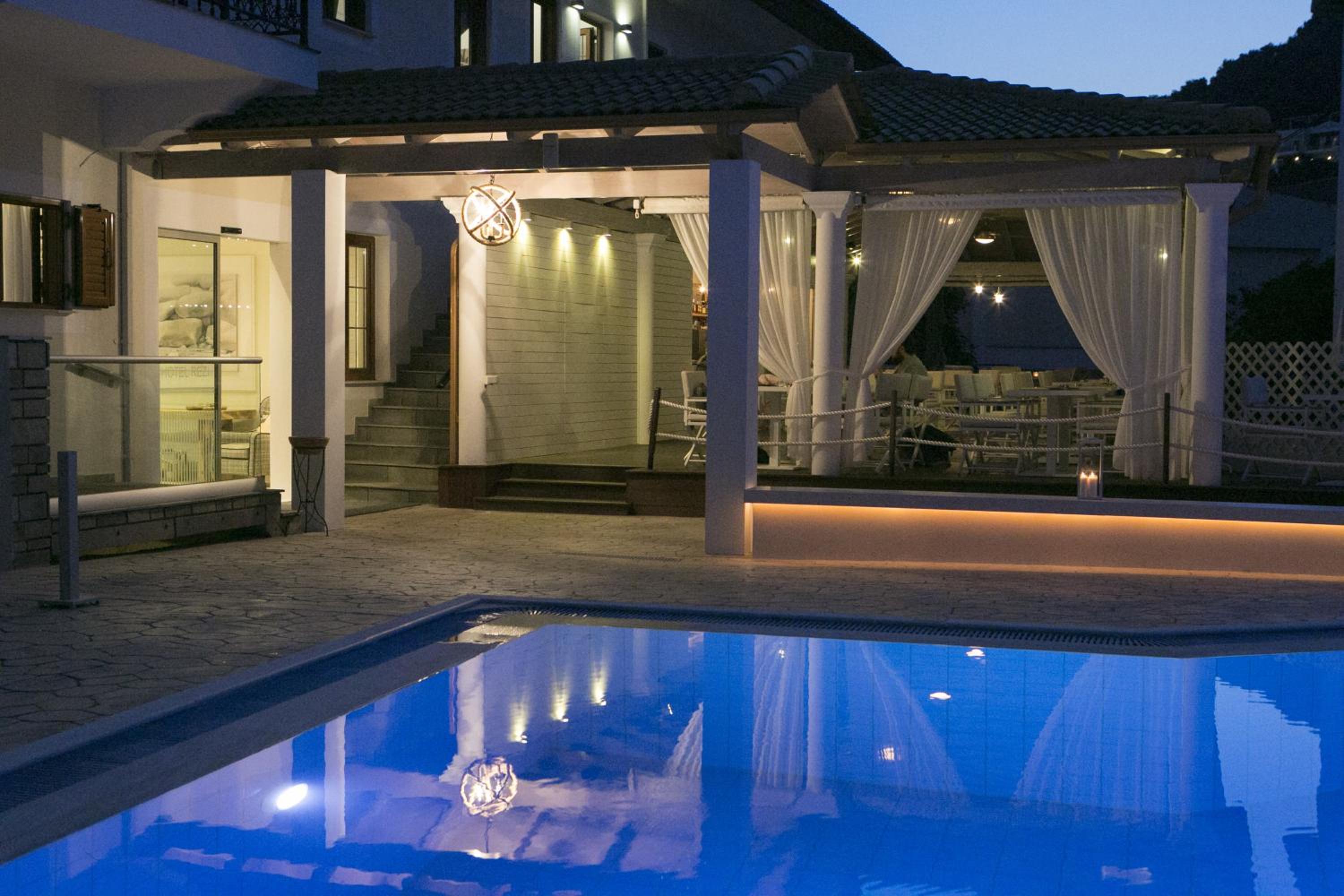 Hotel Rezi, just steps away from Piso Krioneri Beach, offers modern rooms with balconies overlooking the pool and vibrant gardens. Each room is elegantly furnished in light colours, equipped with a TV, fridge, and some with a kitchenette.