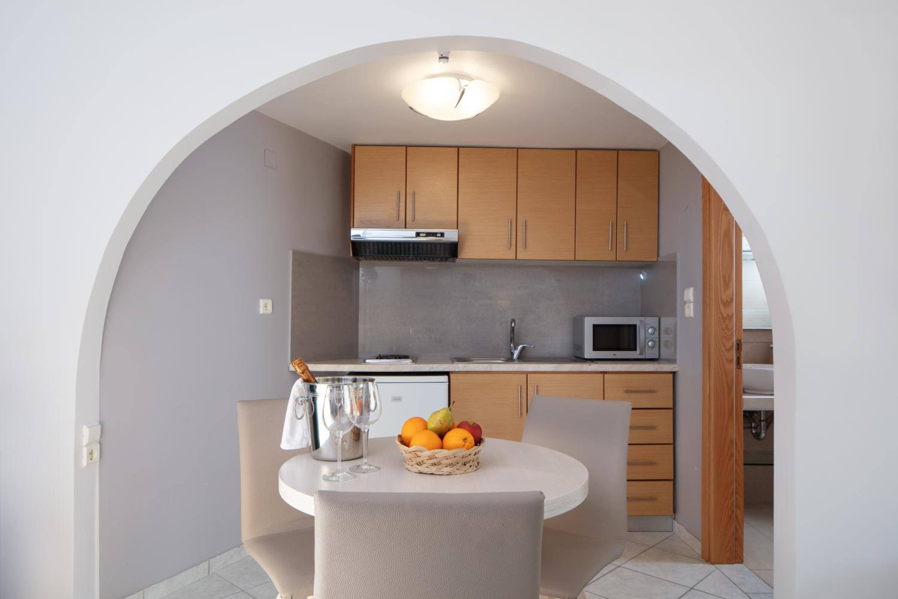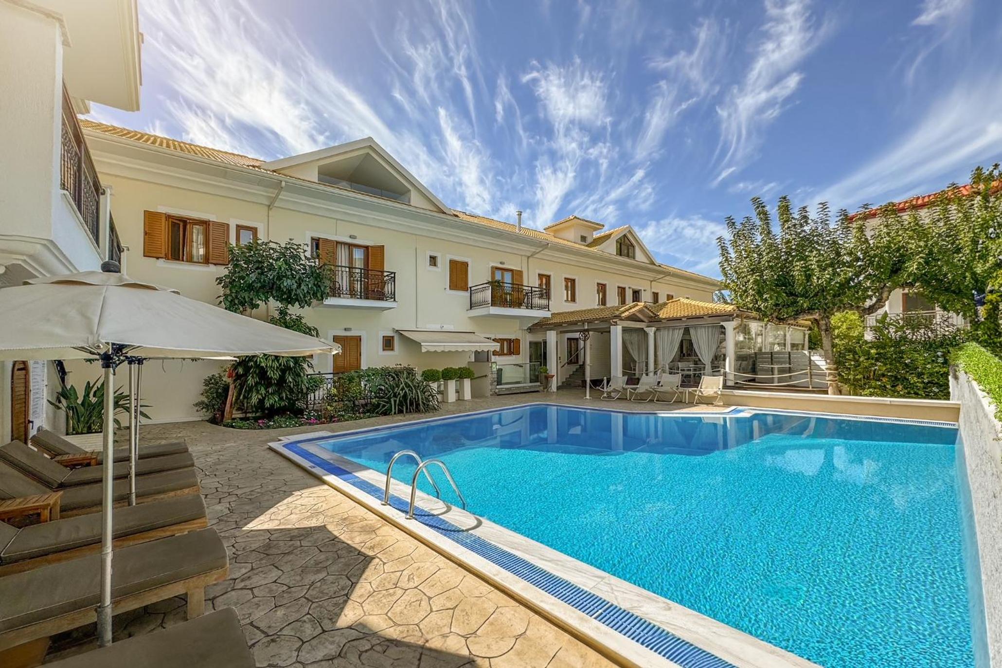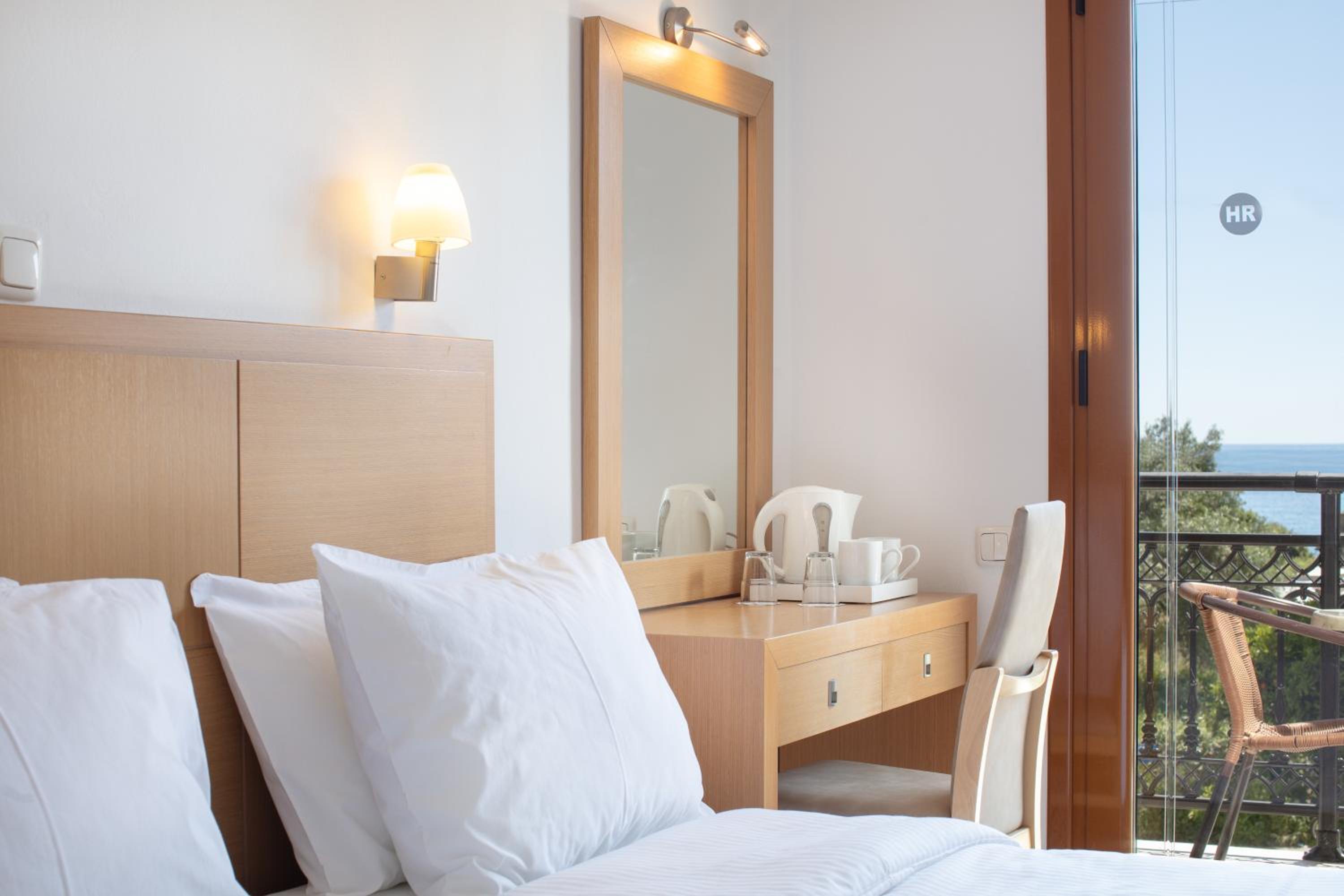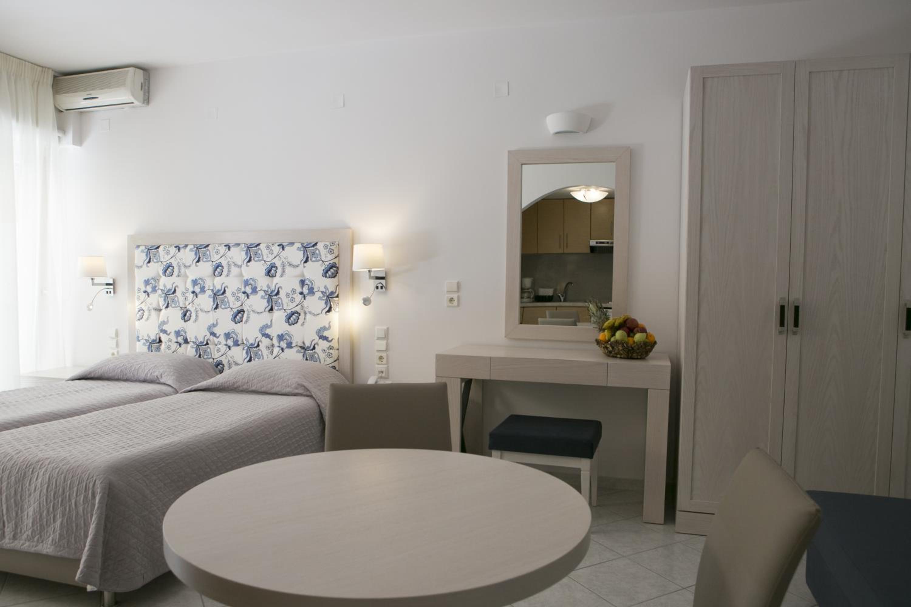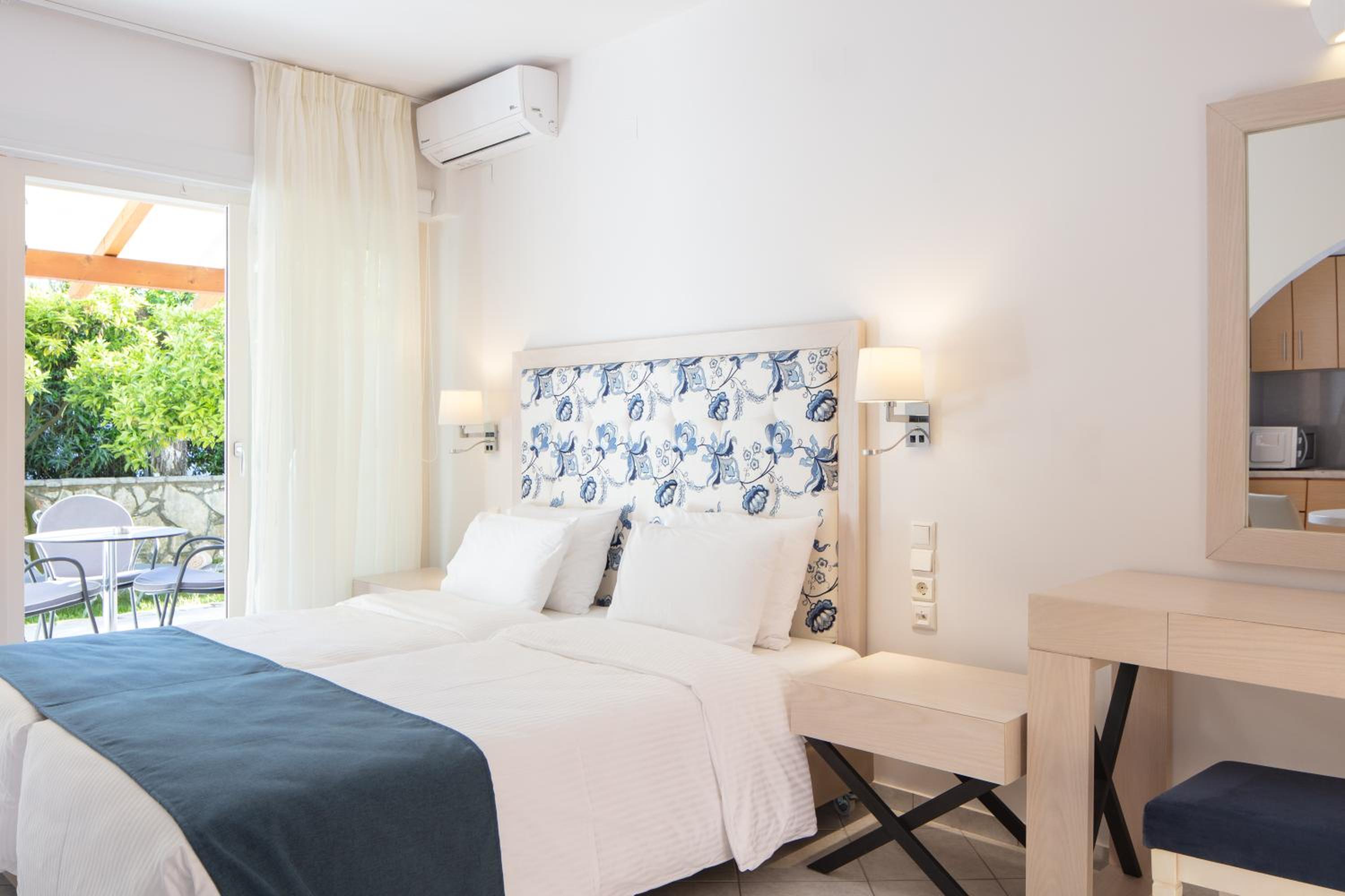 Hotel Rezi, just steps away from Piso Krioneri Beach, offers modern rooms with balconies overlooking the pool and vibrant gardens. Each room is elegantly furnished in light colours, equipped with a TV, fridge, and some with a kitchenette.