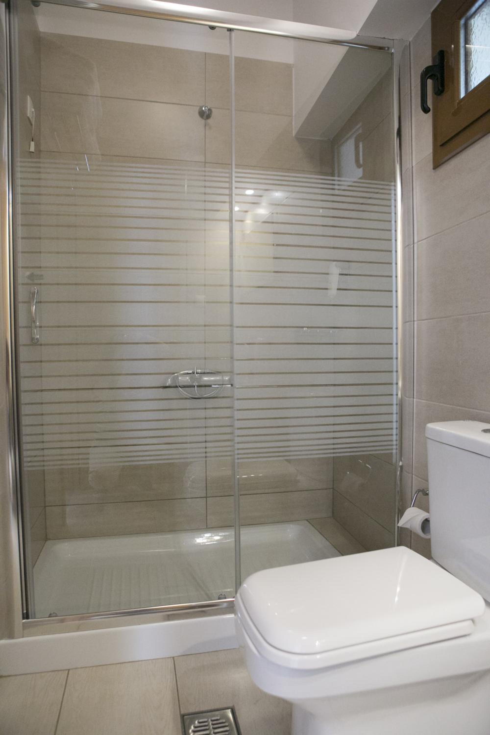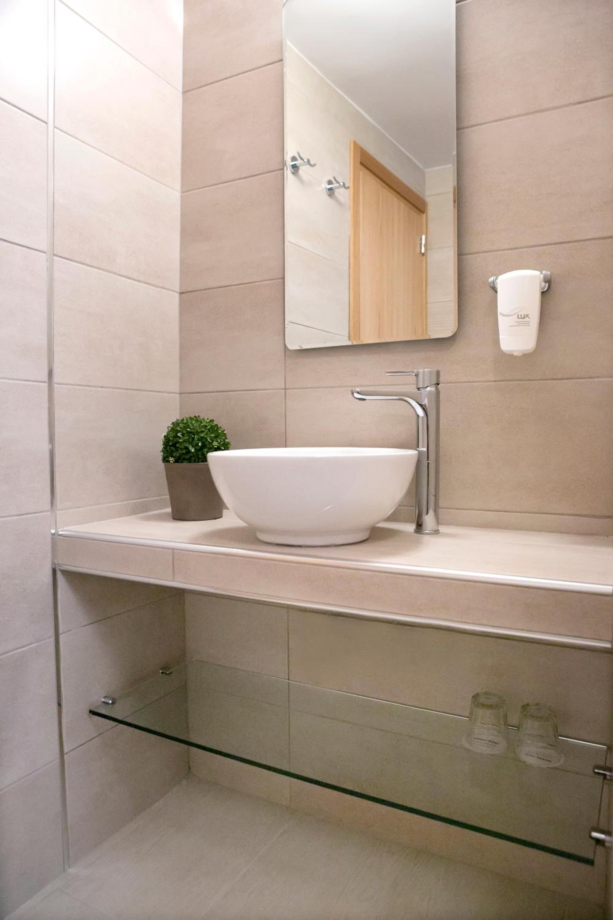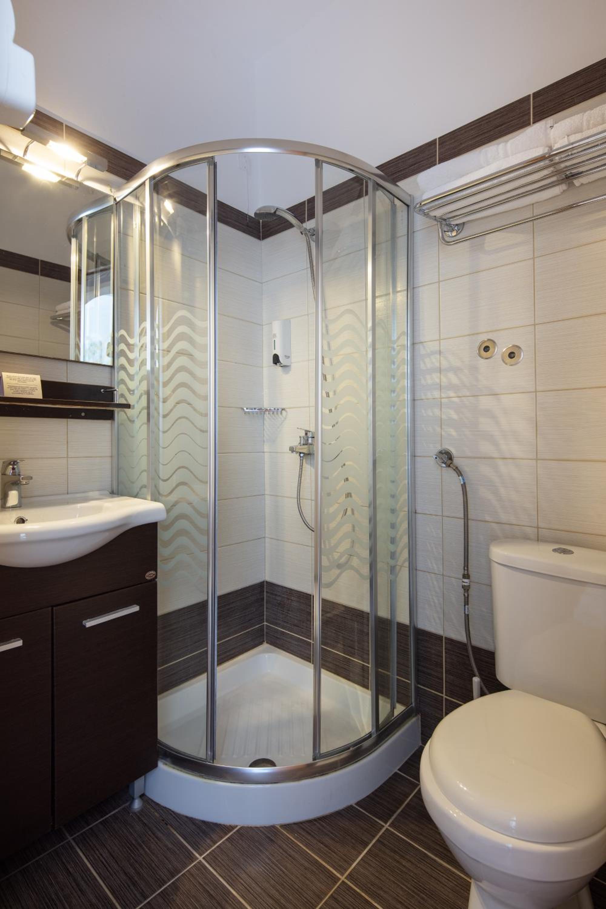 Badeværelset var meget småt på de små værelser, men det fungerede.