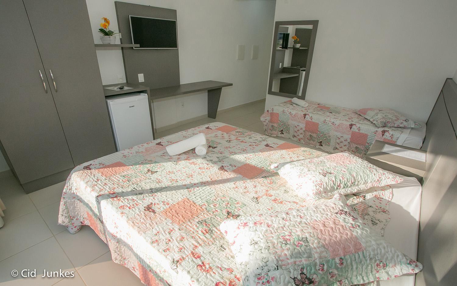 People 6 years old and over stay for R$ 80 per person per night when using an available extra bed.