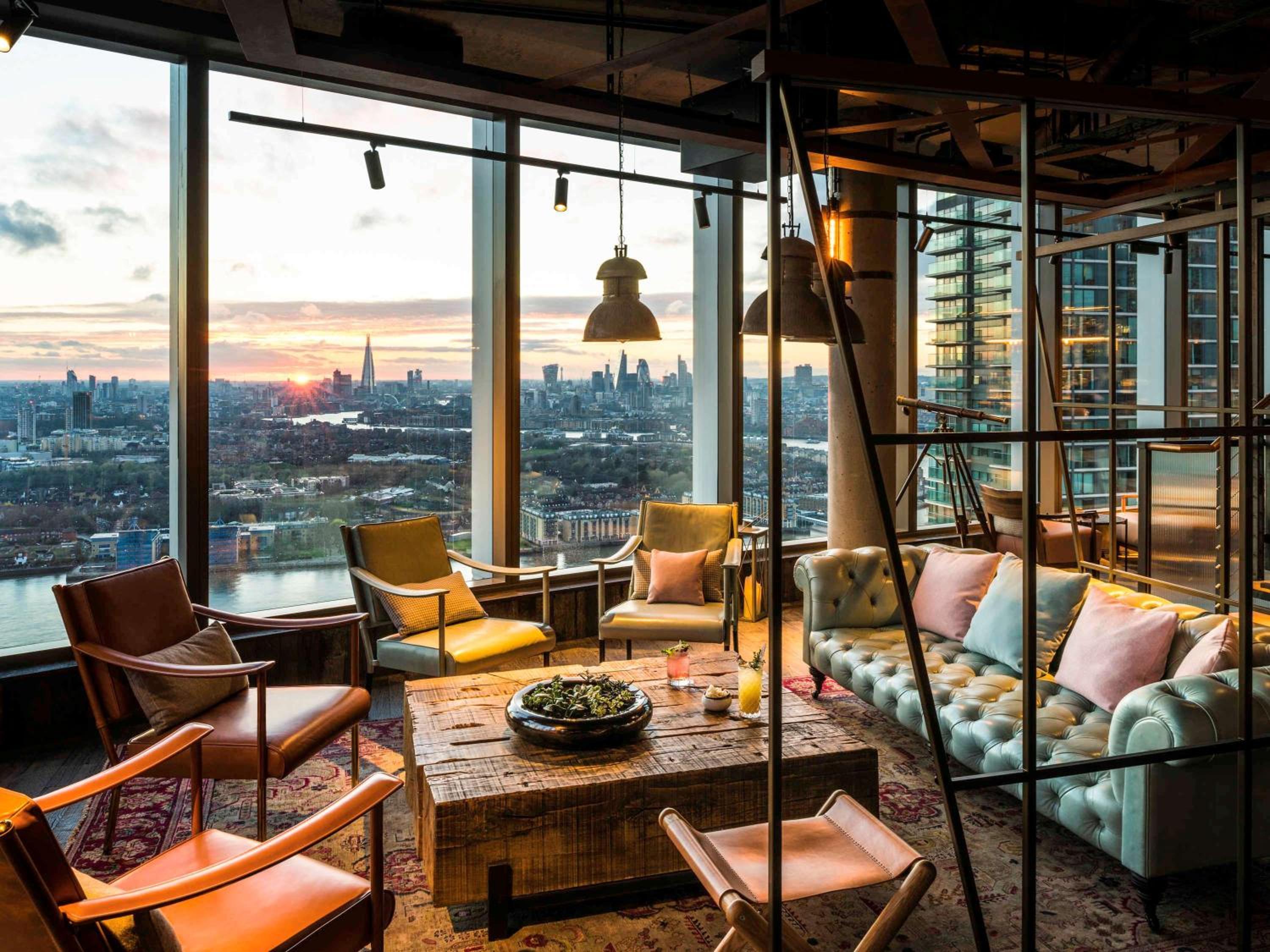 Experience breathtaking panoramic views of the London skyline from our roof terrace at Novotel London Canary Wharf. Enjoy the city's beauty from a unique vantage point, perfect for relaxation or socializing.