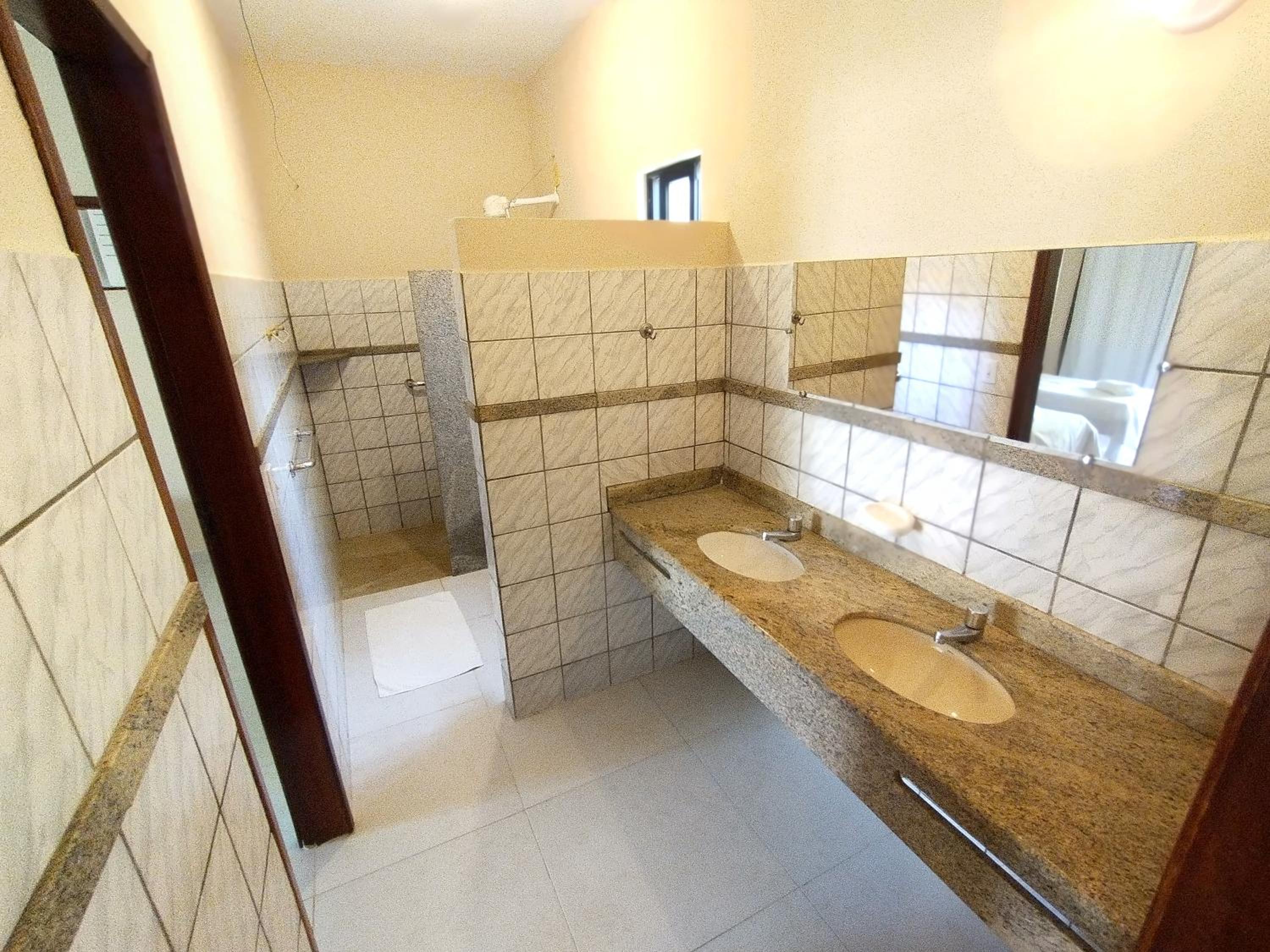 O quarto, de forma geral, estava em condições **inaceitáveis**. O ar-condicionado funcionava mal, as portas tinham fechaduras defeituosas e várias não fechavam corretamente. O chuveiro tinha uma **queda de água péssima**, praticamente inviabilizando um banho confortável. Para piorar, o banheiro não tinha box, o que fazia a água se espalhar por todo o ambiente, molhando o banheiro inteiro e até parte do quarto, deixando o piso constantemente sujo e molhado.