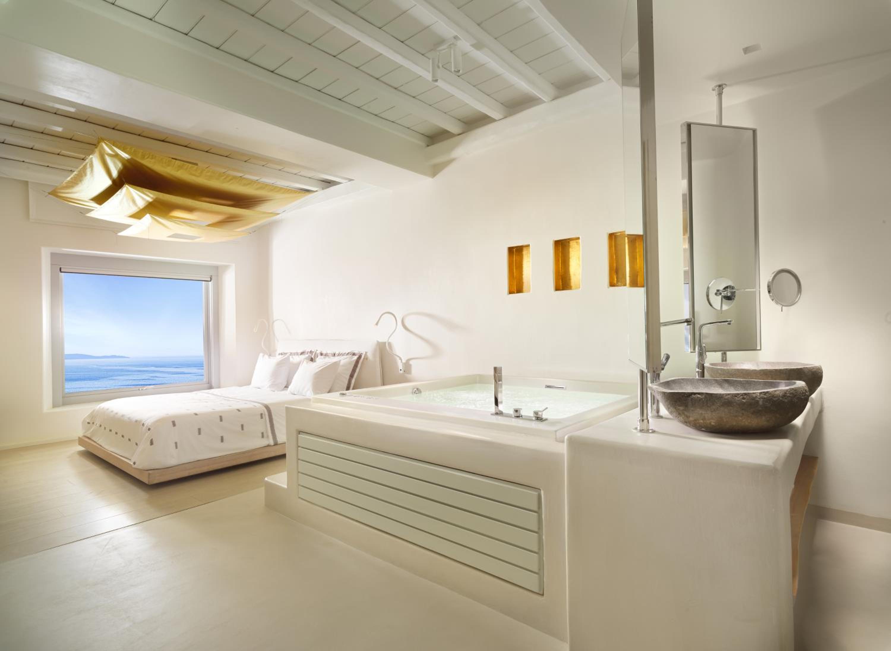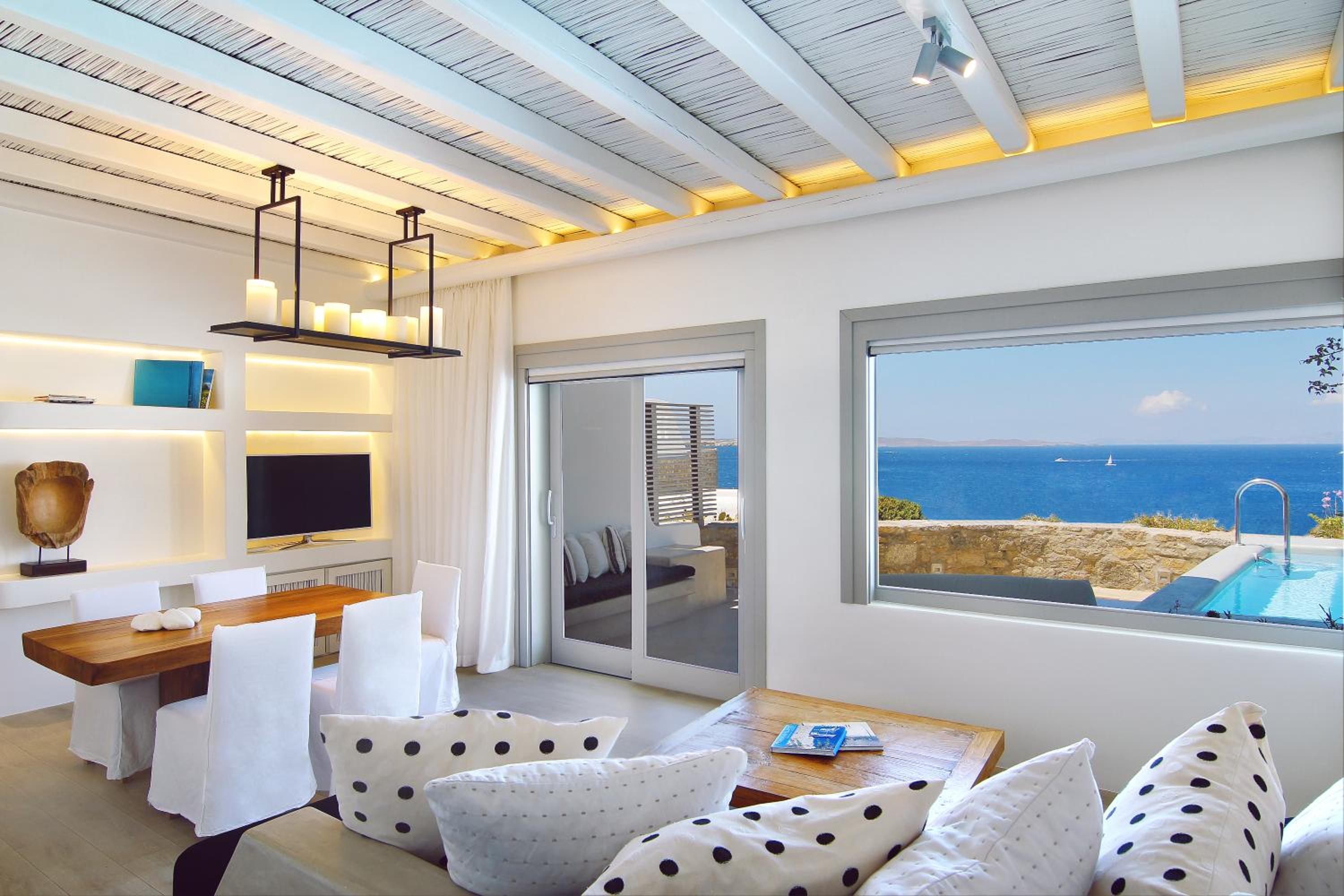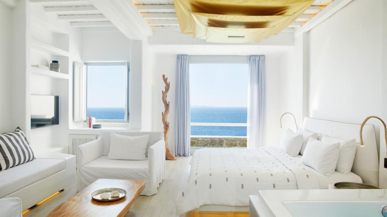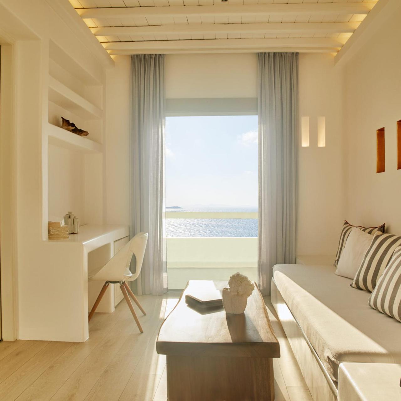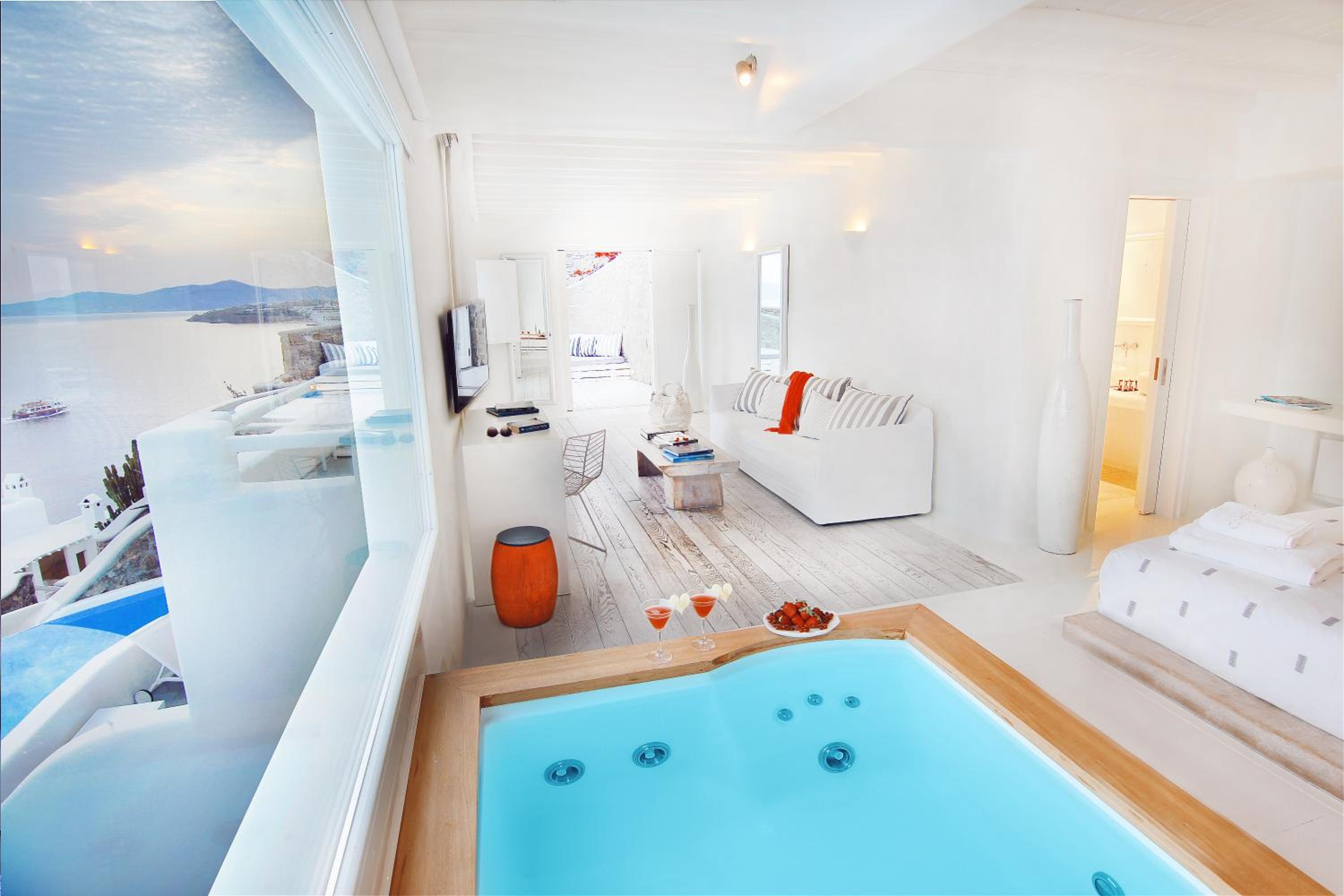 Experience the epitome of luxury at Cavo Tagoo, nestled near Chora in Mykonos. Indulge in the infinity pool with a unique 40-metre aquarium bar and unwind at the fully equipped spa. Enjoy breathtaking sea views from the elegantly decorated rooms, some featuring private pools and spa baths. Treat yourself to traditional spa treatments and relish Mediterranean cuisine at the on-site restaurant. End your day at the Lounge & Pool Bar area, offering mesmerizing views over Mykonos Town. With top-notch amenities like a fitness centre and concierge services, Cavo Tagoo ensures a memorable stay. Book now for a lavish getaway.