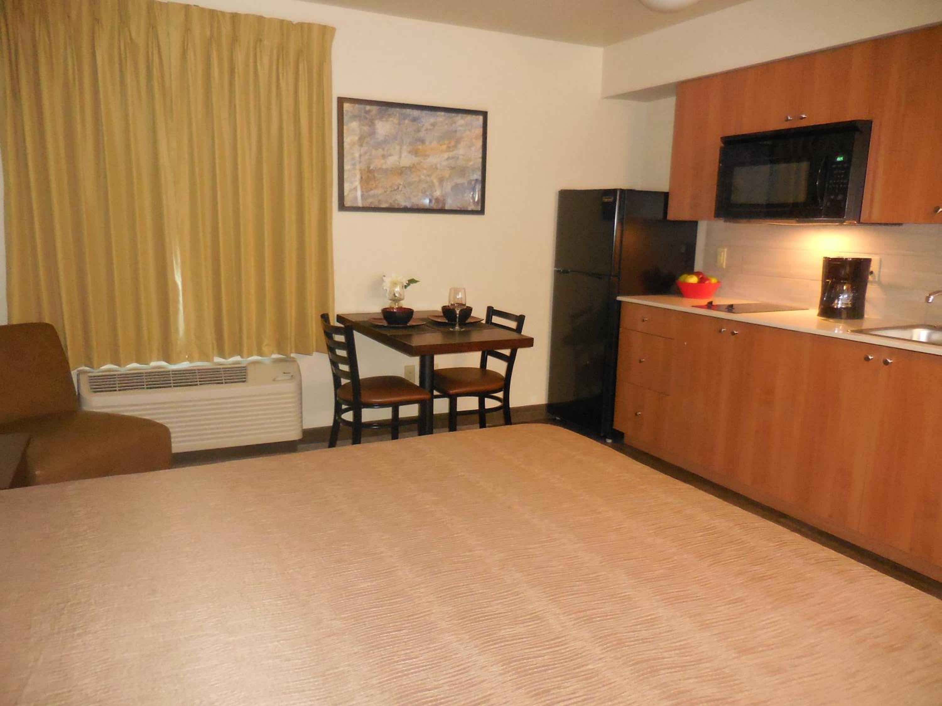 I had a great experience at this hotel. The room was a kitchenette and very clean. The price was lower than in other places in the same area. Perfect location for me to get to my surgeon's office, and to the hospital for surgery. Slight problem with "no plates, cups or utensils in the kitchen. You can buy a "kitchen pack" from the front desk, but I just ordered a pizza from Domino's & didn't figure I needed anything.