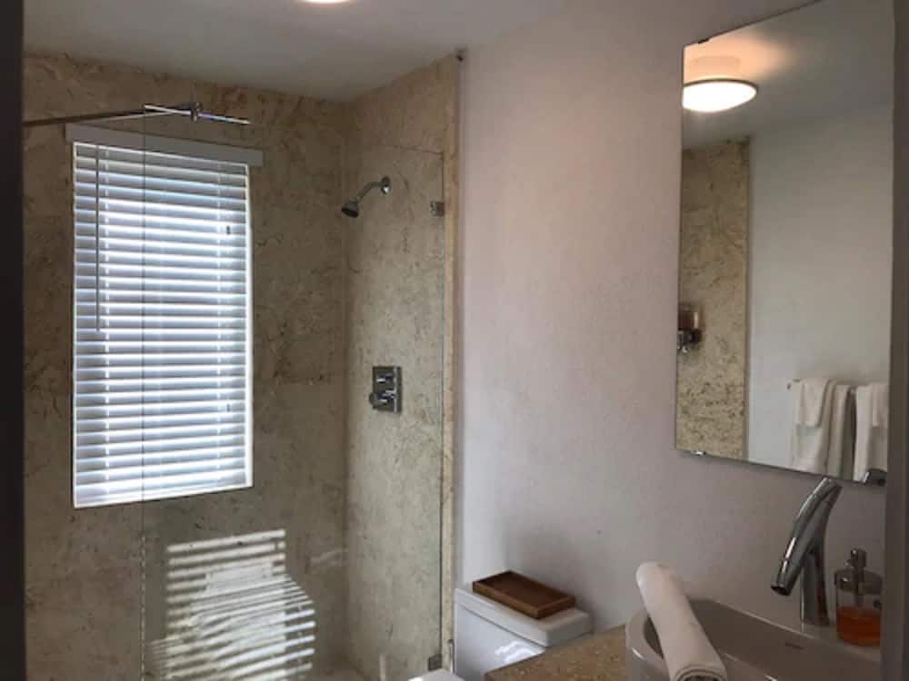 We stayed in an ocean-view room, which was very romantic. It is a room where couples can connect. The shower is in the room but in a very aesthetically pleasing position. There's no TV in this room, but watching your partner shower can be entertaining and interactive enough. :)