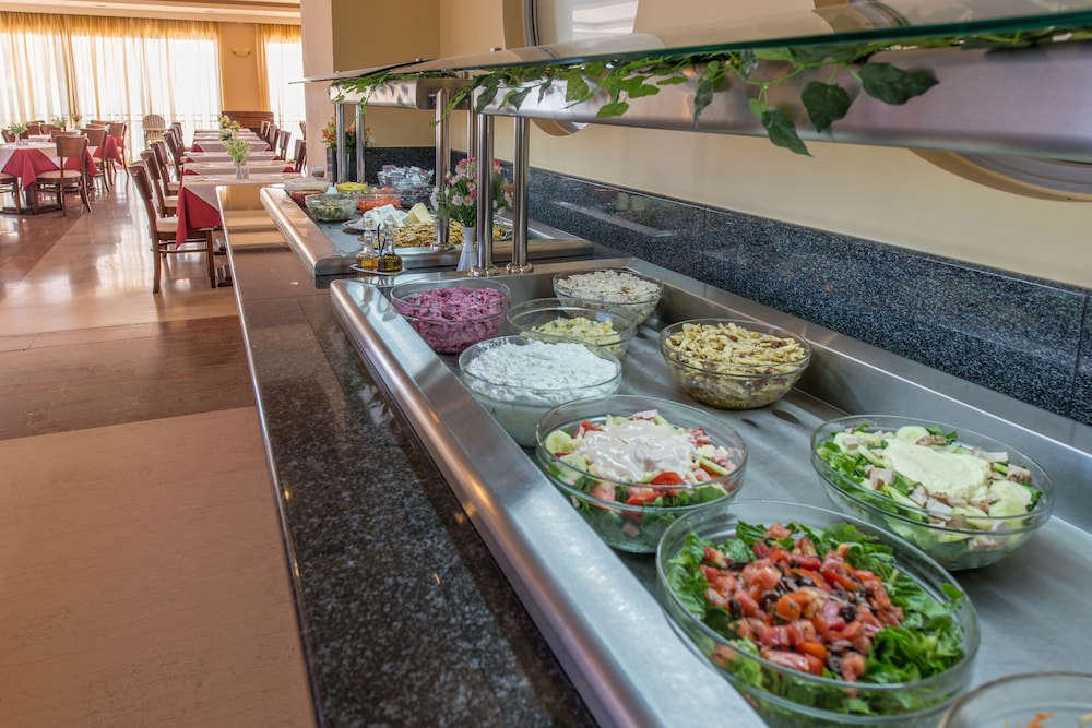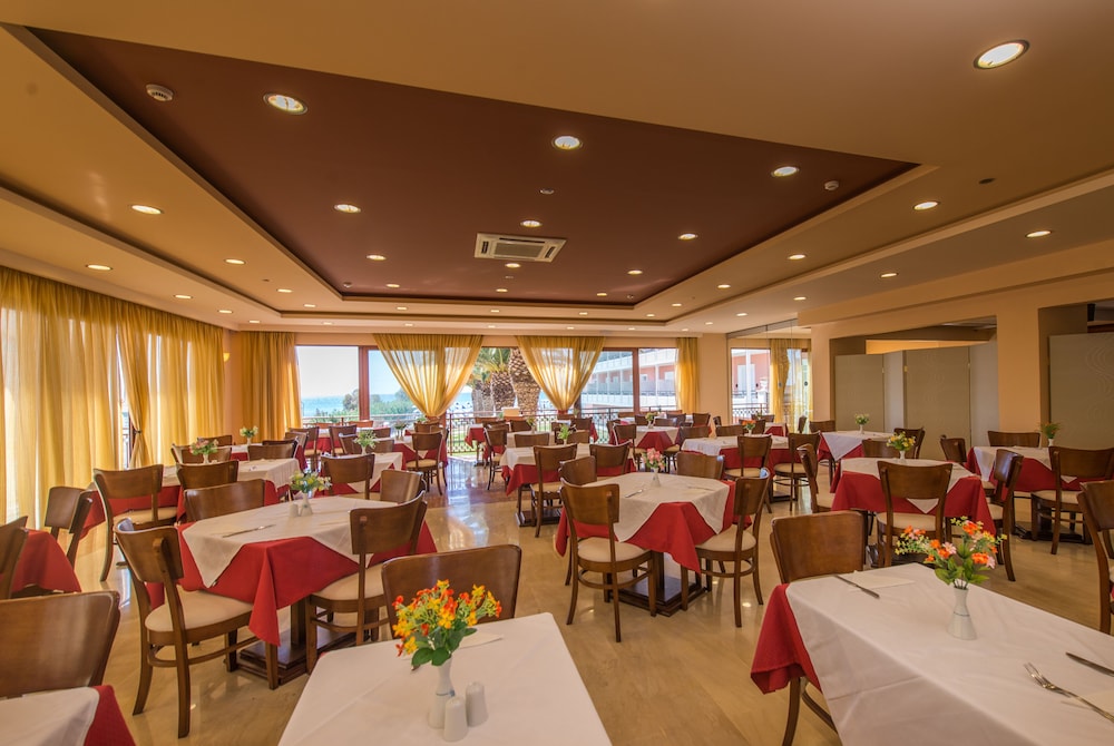 Nice room. Comfy beds. Cleanliness 100%. Greek Night on the Sunday. Excellent breakfast. Very helpful staff. Spacious garden. Pool, jacuzzi and kids' pool. The hotel is right on the beach and what a beach! Clear water, turtles, soft sand. All this for 50euros per night. Some may say the hotel is rather dated but personally I liked this aspect of it too.