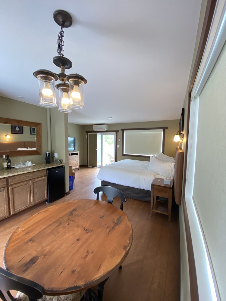 Tucked away on a quiet road, near the Similkameen River. Great pool and choices for stay. As you are away from a town, we brought food to cook but did not like using a shared kitchen. We had a 3 bedroom suite for just 2 of us, but it was not cleaned well or provisioned well before we arrive. And the fridge was in one of the bedrooms.