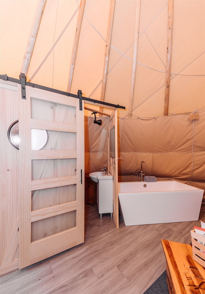 we stayed in the Teepee, amazing king size bed with a private bathroom. Enjoyed the hot tub and a wine tasting. Host Candice was personable and knowledgeable and excellent company. Only suggestion would be robes..