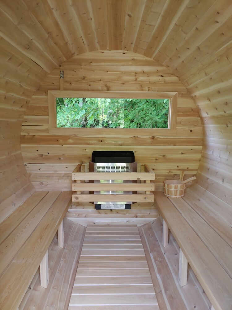 Its a cozy and quite place along with beautiful hot bath tubs situated in nature with forest and lake view.