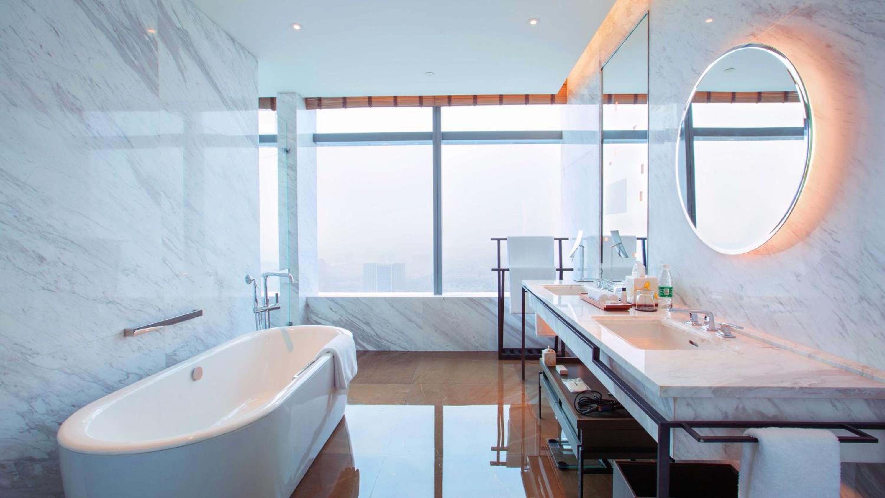 Each guest room at Park Hyatt Hangzhou is thoughtfully designed with a desk, flat-screen TV, air conditioning, and a private bathroom with free toiletries. Some rooms even feature a separate seating area for added comfort. Additionally, amenities such as a hairdryer and CD player are provided in the rooms.