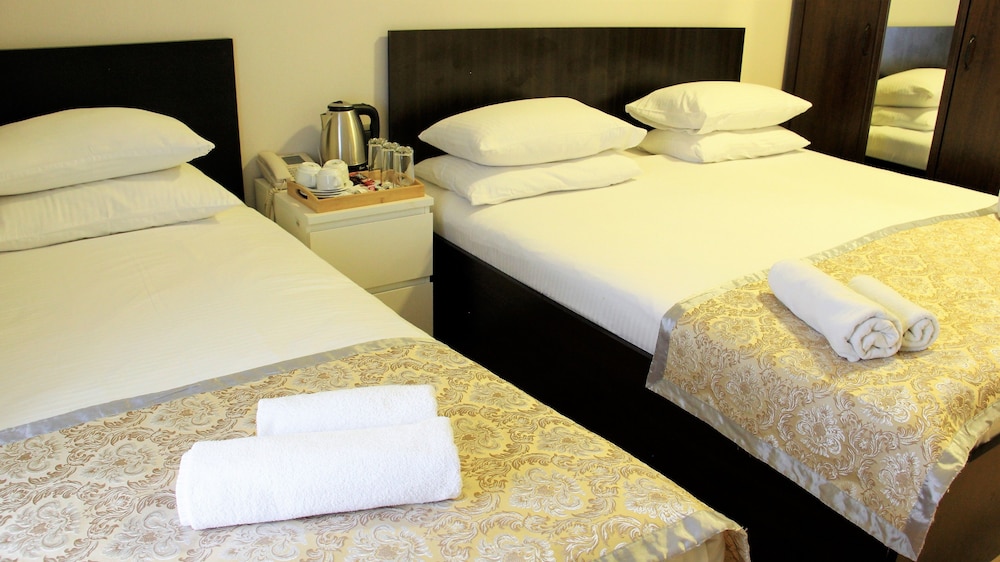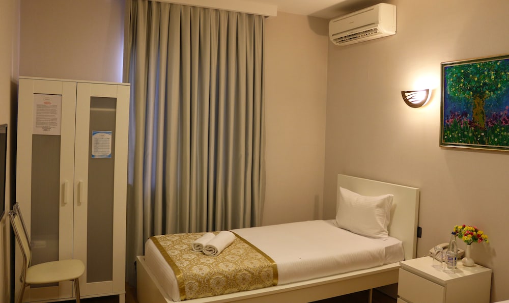 Comfortable Rooms and Prime Location: Relax in our air-conditioned rooms with modern amenities. Stay entertained with satellite programming and stay connected with free Wi-Fi. Explore nearby attractions like Baku City Circuit and Nizami Street during your stay.