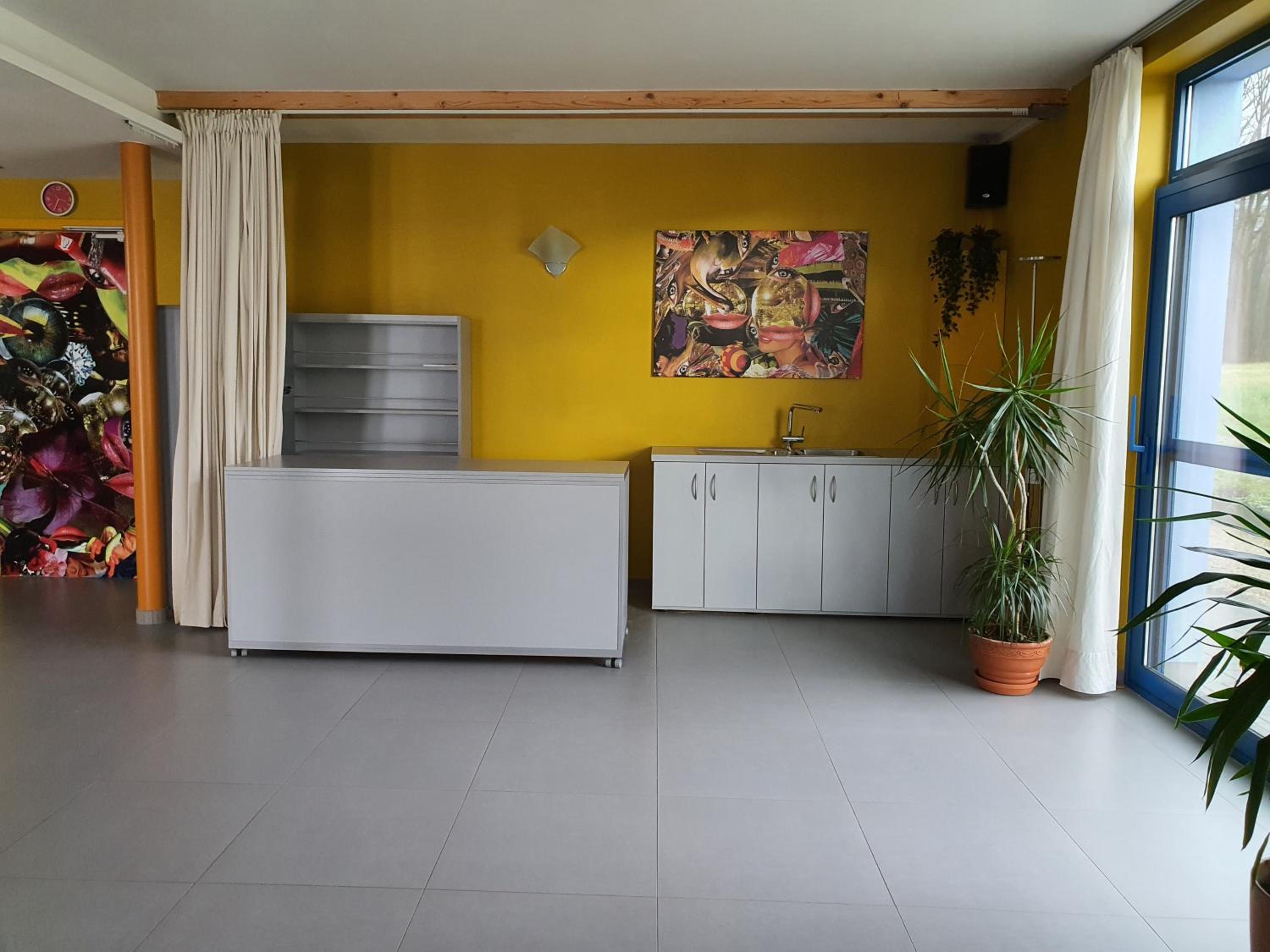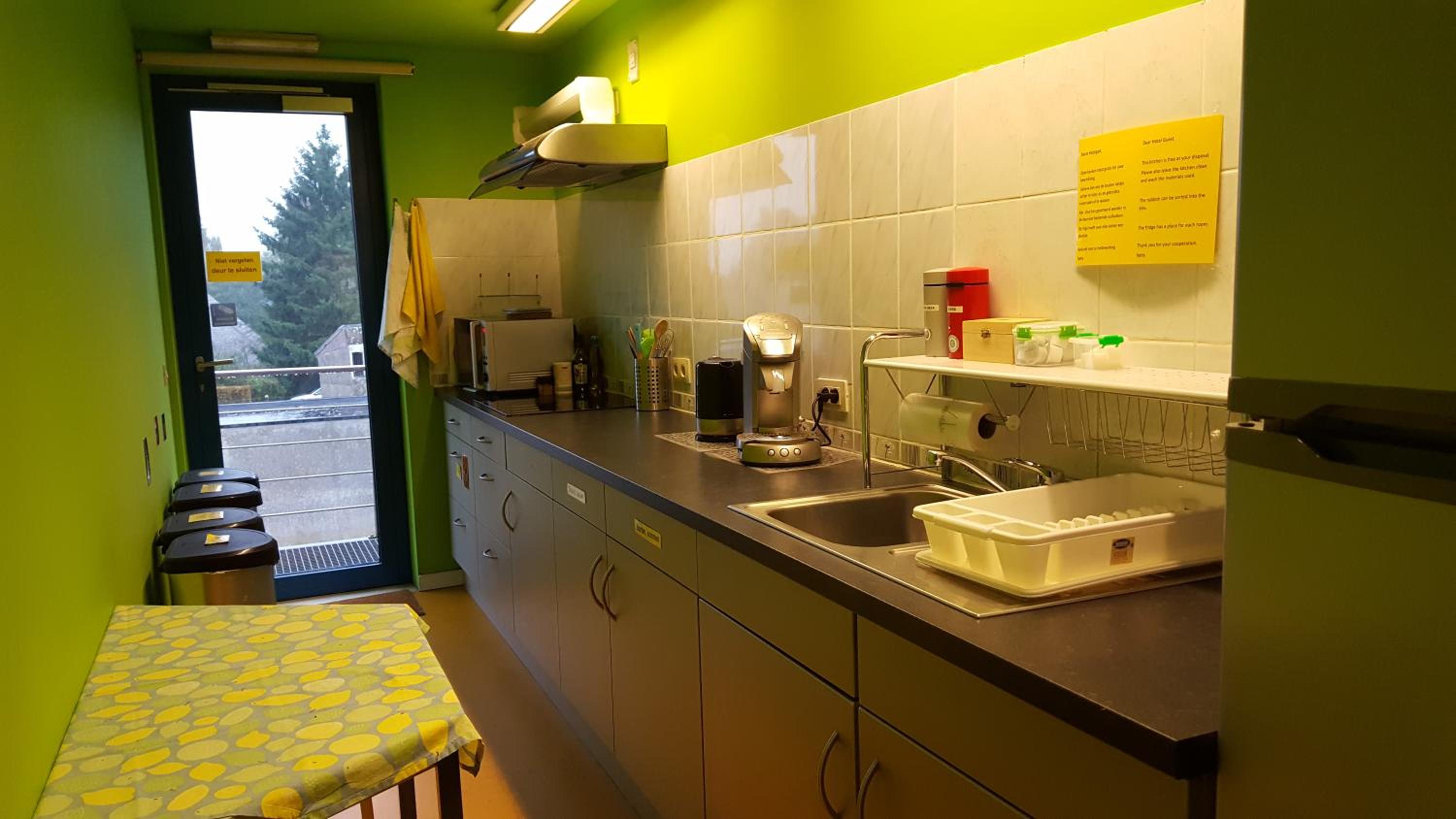 De ontvangst en de overige gasten die veel lawaai maakten met het nemen van hun ontbijt in de gezamenlijke keuken.