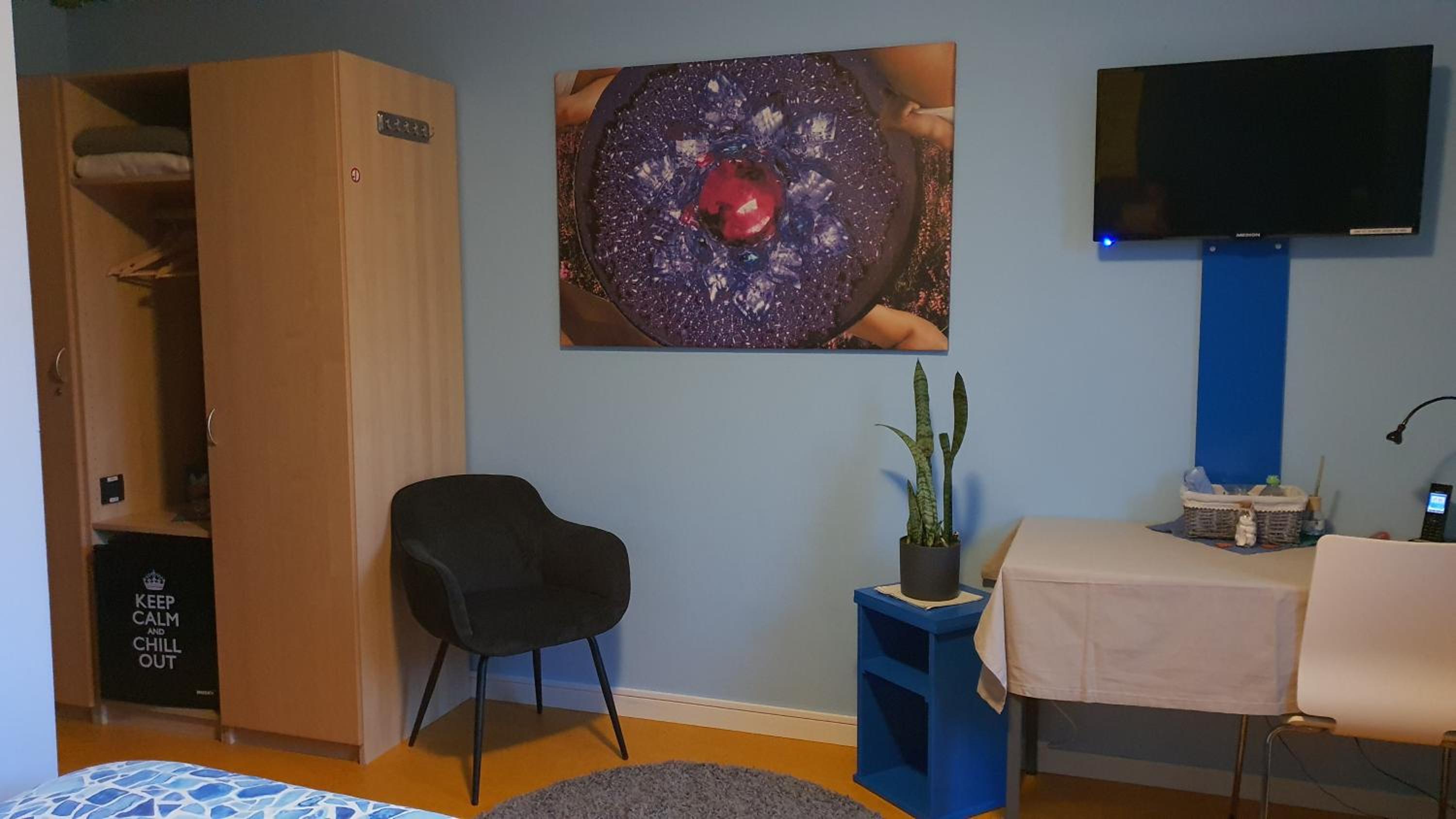 De ontvangst was heel hartelijk en persoonlijk. Je krijgt meteen een gevoel van ergens welkom te zijn. De kamer was heel netjes en alle nodige faciliteiten waren aanwezig. Ik had ook geluk om 's avonds laat, na terugkeer van een evenement, nog net één plekje te vinden op de kleine hotelparking. Het ontbijt was gevarieerd en van een degelijke kwaliteit. Alles in het hotel maakt het overduidelijk dat de gastvrouw dit met hart en ziel en heel veel liefde doet.