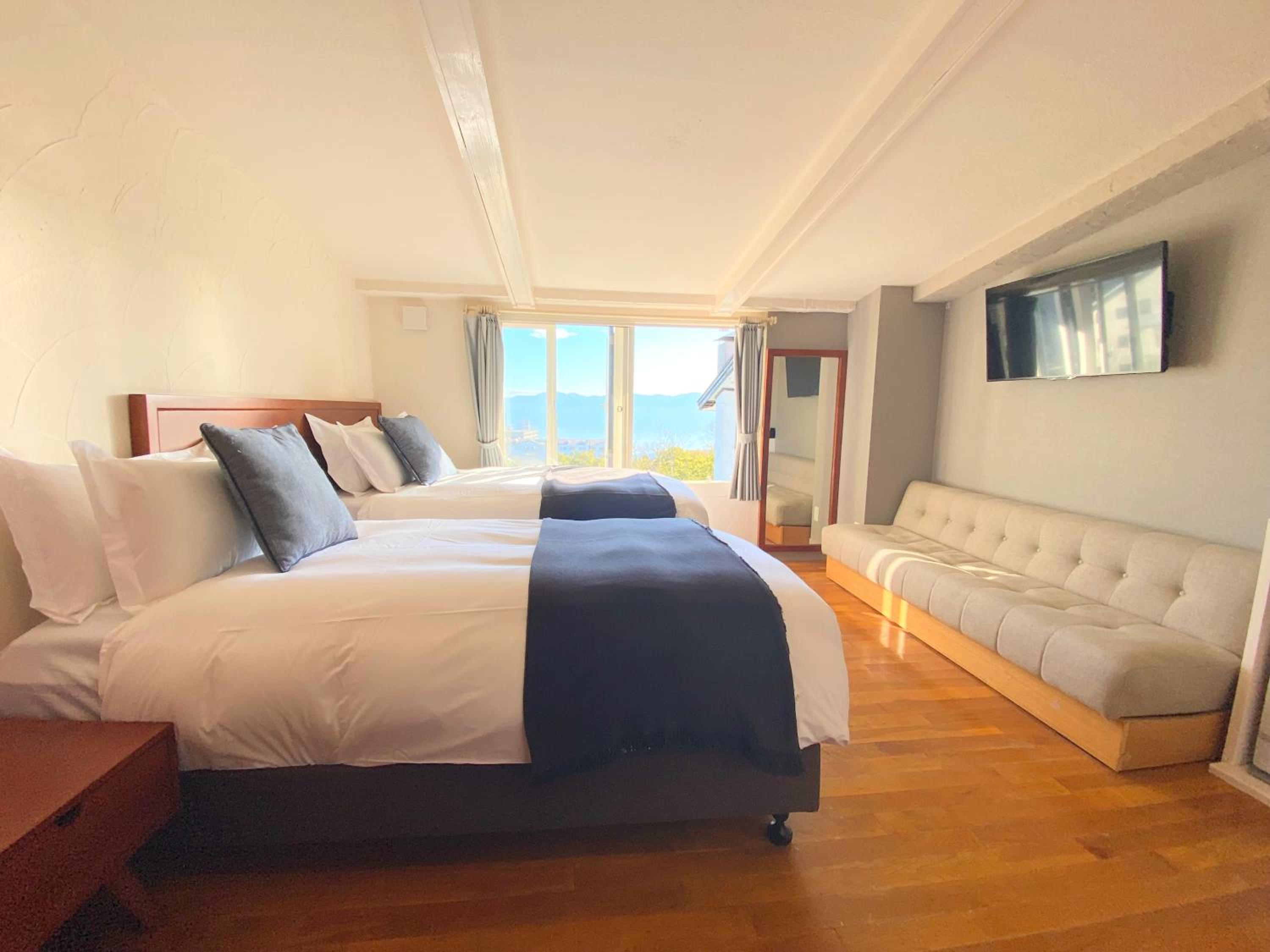 The spacious western-style rooms with wooden floors and modern amenities provide a cozy retreat after a day on the slopes. Relax in the hot spring bath on-site for the ultimate rejuvenation.