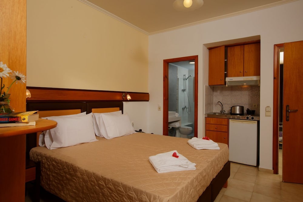 Wrap up your day at Panorama Hotel Apartments with a drink at one of the bars and savor a delightful continental breakfast the next morning. Book now for a beachside retreat near Stalis Beach.