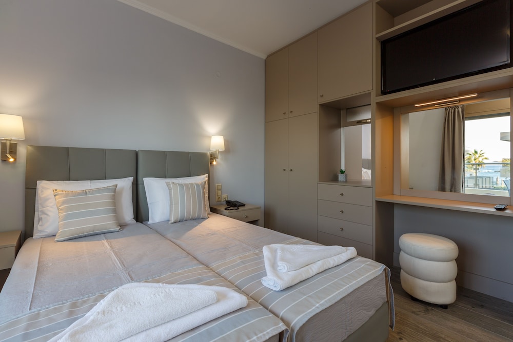 Wir waren 8 Tage zu zweit in dem Apartment Hotel, Dieses verfügt über einen Aufzug, Pool, Restaurant und eine Beach Bar am Strand. Da wir die ersten Tage nur unterwegs waren um die Insel zu erkunden, waren wir nur Nachst im Hotel und es lies sich gut schlafen. Die lezten Tage haben wir dann entspannt und auch die vorzüge des Restaurants und der Beach Bar genossen. Ich kann nur sagen: Gutes Essen, Gutes Bier, Viel Auswahl, Sehr Nettes Personal egal wo, Perfekter Sandstrand und super lage.