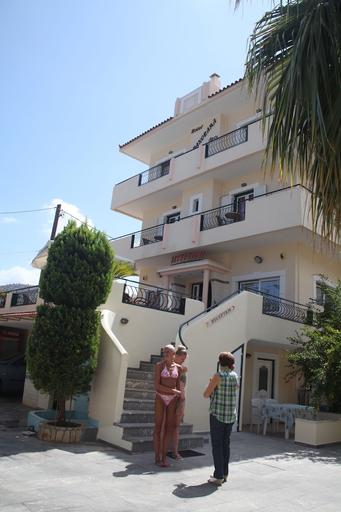 Perfect location close to beach ,shops and restaurants. Room was adequate for me as a one person traveller it felt safe and there was a lift in the main building .Well serviced daily by housekeeping staff .Aircon vedy effective as it was hot and fee reasonable I was collected from the airport by Mike the barman and returned to airport by Eva the owner which was worth the fee .Staff were all very friendly and helpful and had obviously been at Panorama for many years which tells a good story .Restaurant was managed by Manos who served good food all day and evening and always with a smile and warm welcome and reasonably priced .Would recommend and if returning to stalis would re_book