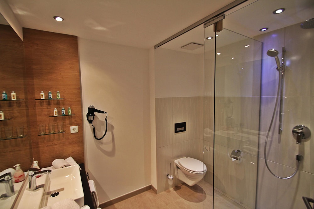 This is an amazing find. Stopped for an overnight enroute from Austria to the UK. The rooms are spacious very clean and modern. The hotel has a restaurant selling regional dishes made from locally sourced produce. An excellently breakfast is offered again consisting of a lot of home made food sourced locally. The nearby town has a couple of other restaurants and there are a couple of supermarkets nearby. The hotel is also English speaking. This is a great hotel in a great location.