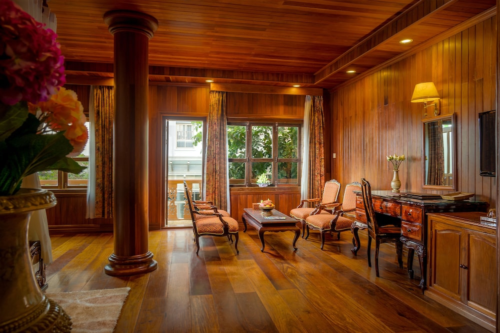 The hotel is beautiful, full of wood and old-style decor. I liked it. The location was great, right at the night market by the river.