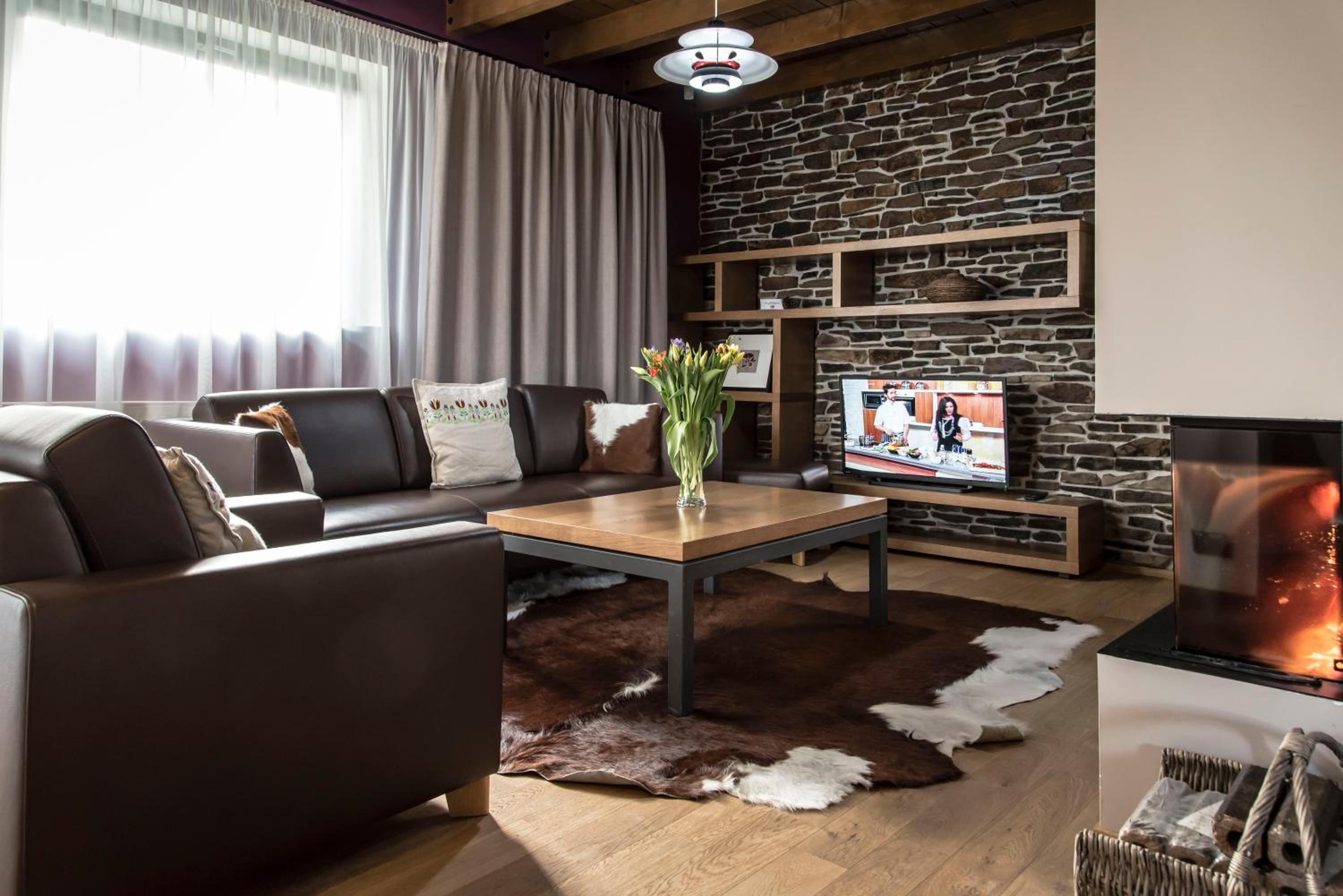 Veľká priestranná izba, moderný nábytok.