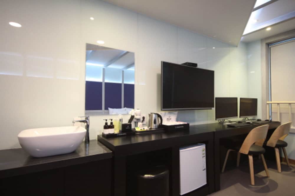 It's a good choice that at least it takes us very few minutes to the nearest underground railway station. The room is well facilitated, tidy and clean. The staff at the front desk is very nice and helpful although they can speak English a little. There are many different kinds of shops and restaurants nearby. It's a good hotel at all but it's not good that only Korean language is applied in notices and users manuals. It's very difficult for me to use the multi-purpose control to control lights, TV and air-conditioner.