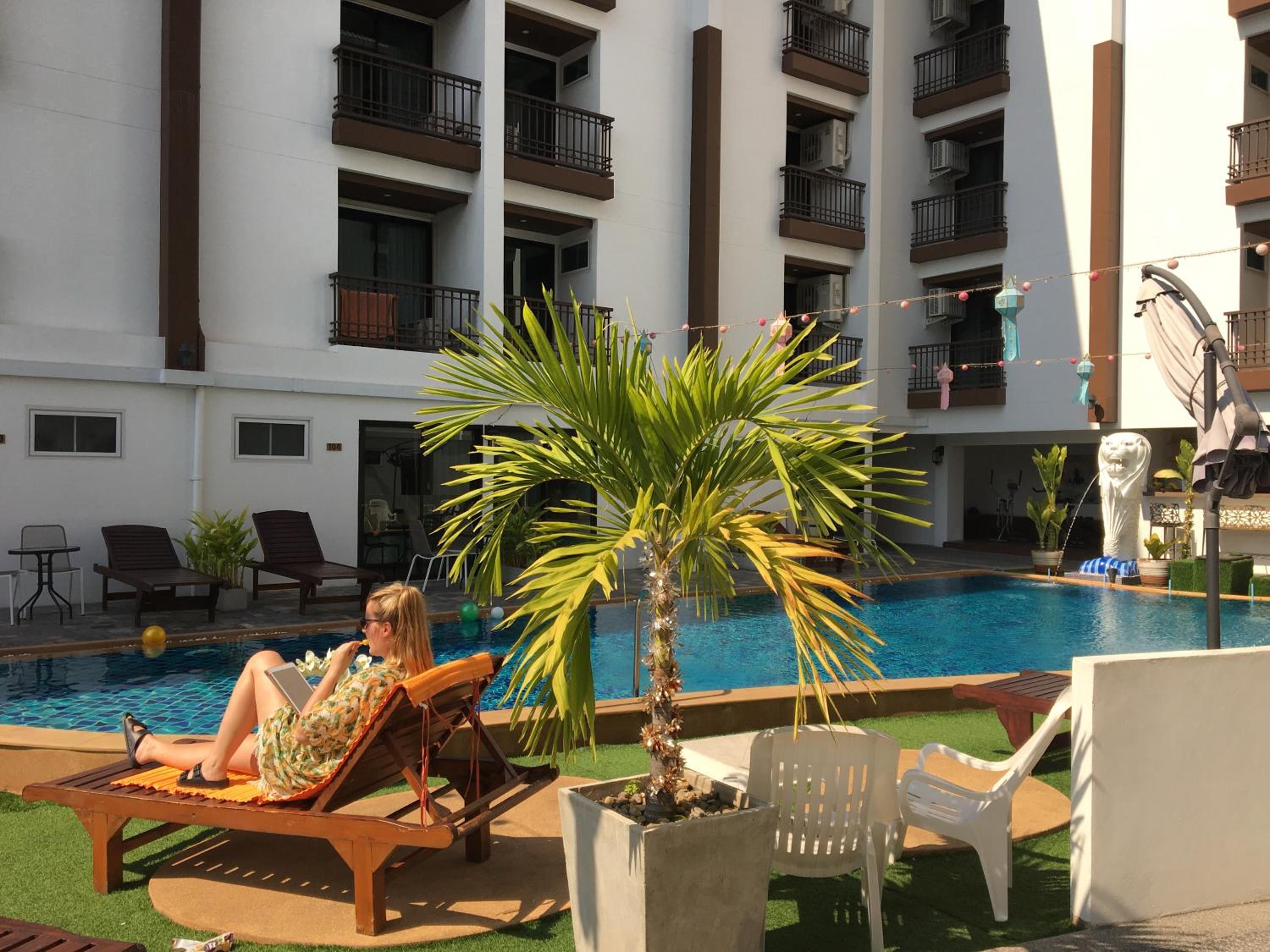 I stayed about a month. It's in a great location, an easy two block walk from the ancient city but located in a quiet and peaceful residential area. It's very family friendly with large family suites to rent. But never fear solo travelers, the pool closes at 8pm and the rest of the night is so peaceful. EXCELLENT SERVICE! The manager even loaned me a sun umbrella for my stay. Everyone very friendly, housekeeping did an excellent job, my room was spotless upon arrival. Larger than expected rooms, large bath, balcony with seating overlooking the pool. 10/10, I will return in November for 3 months and stay here!