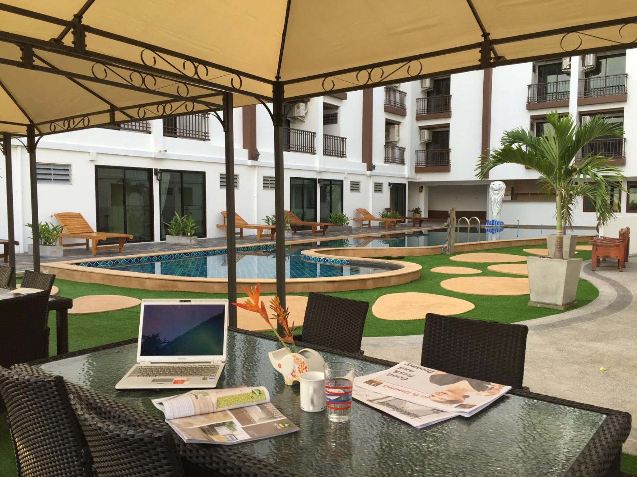 Enjoy a refreshing dip in the outdoor pool at Baan Sang Singh and take advantage of the free shuttle service to explore the nearby Walking Street on weekends.