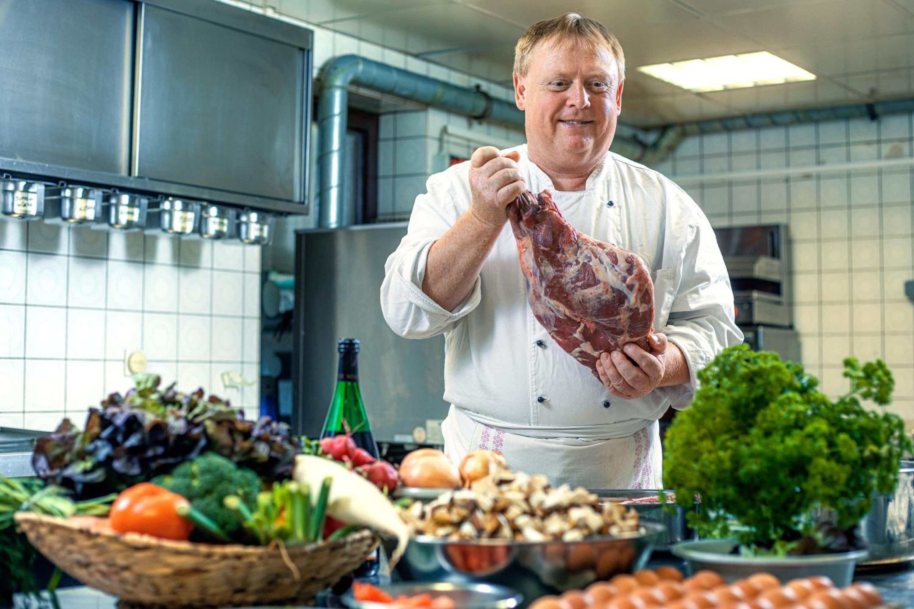 Chefin kommt persönlich an den Tisch beim Abendessen.