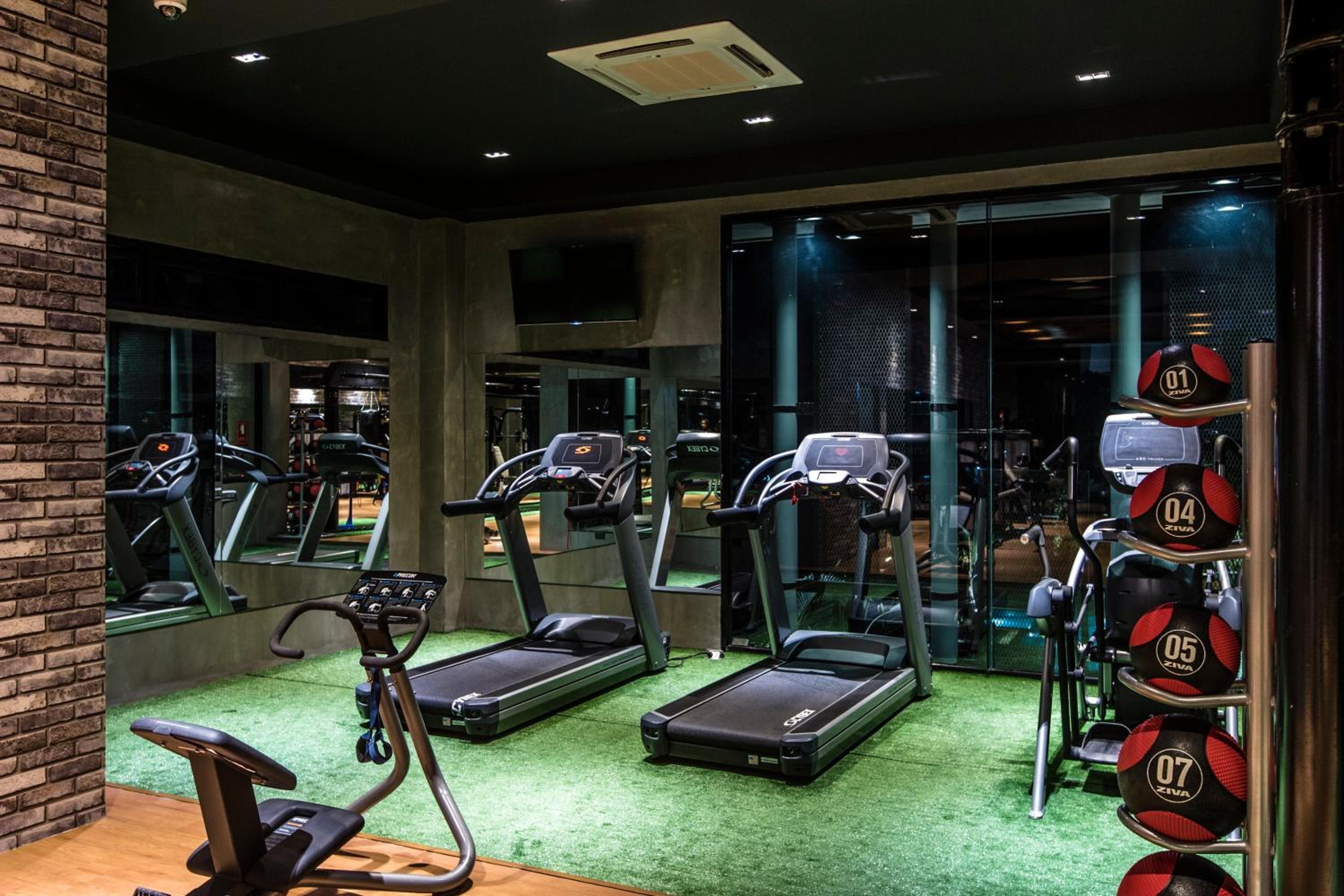 Das Personal, das Bett und das Fitnessstudio