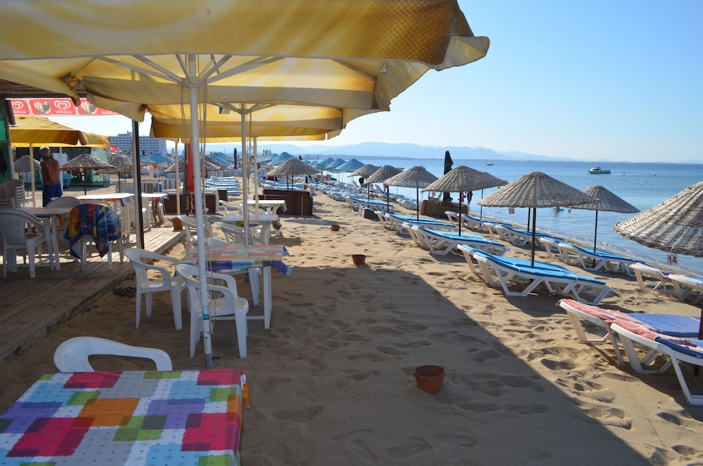 olumlu ve olumsuz bütün yorumlari okuyarak gittik ama ne isteyip ne bekledigimizi biliyorduk kahvaltisiz oda tuttuk .plajının oluşu avantajimizdi otelden fiş alıp yürüme mesafesinde 800-900 MT kadar park sorunu yaşamadık.sokak içinde bulabiliyorsunuz .biz sadece konaklamak için kullanacağımız dan klima buzdolabı önemliydi aktif çalışıyordu .sıcak suyu vardı .lobi ve havuzu kullanmadık.konumu güzeldi yakındı her yere etrafında şok vb marketler vardı .interneti aktifti .